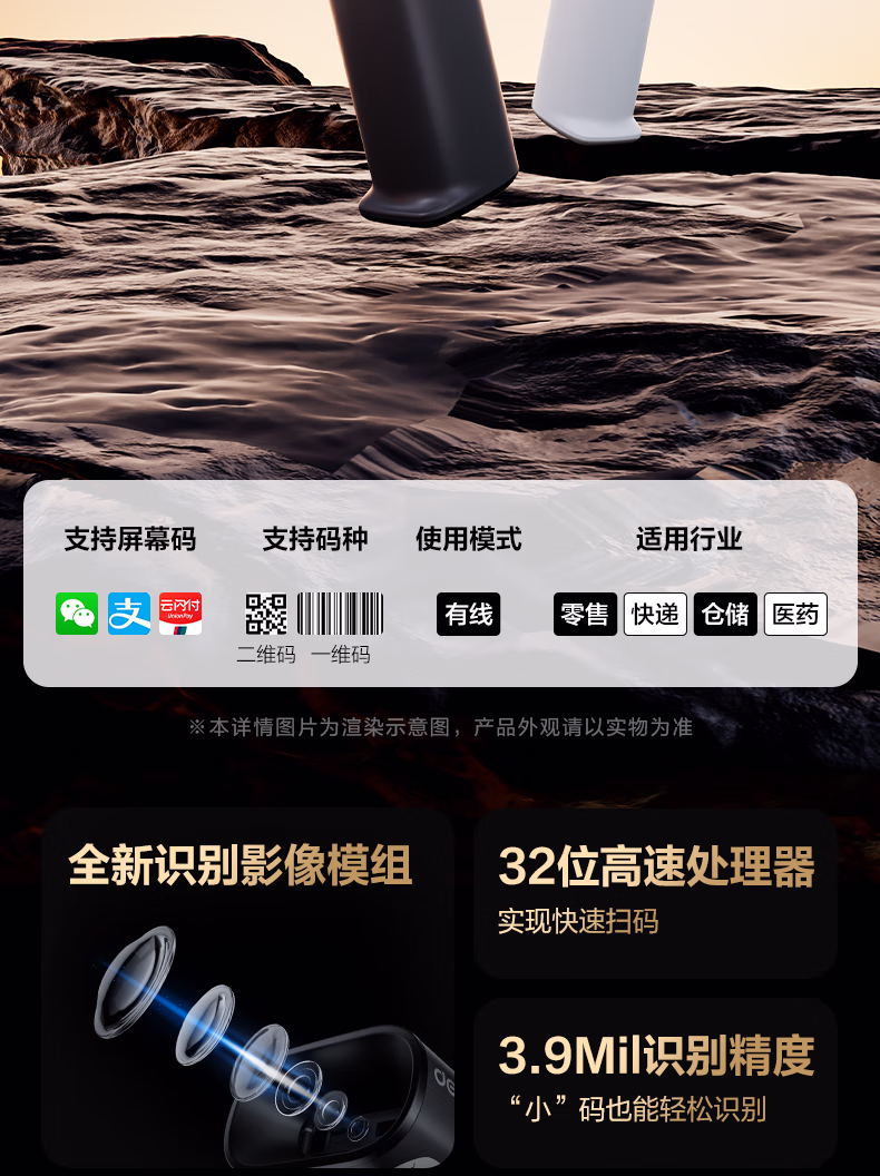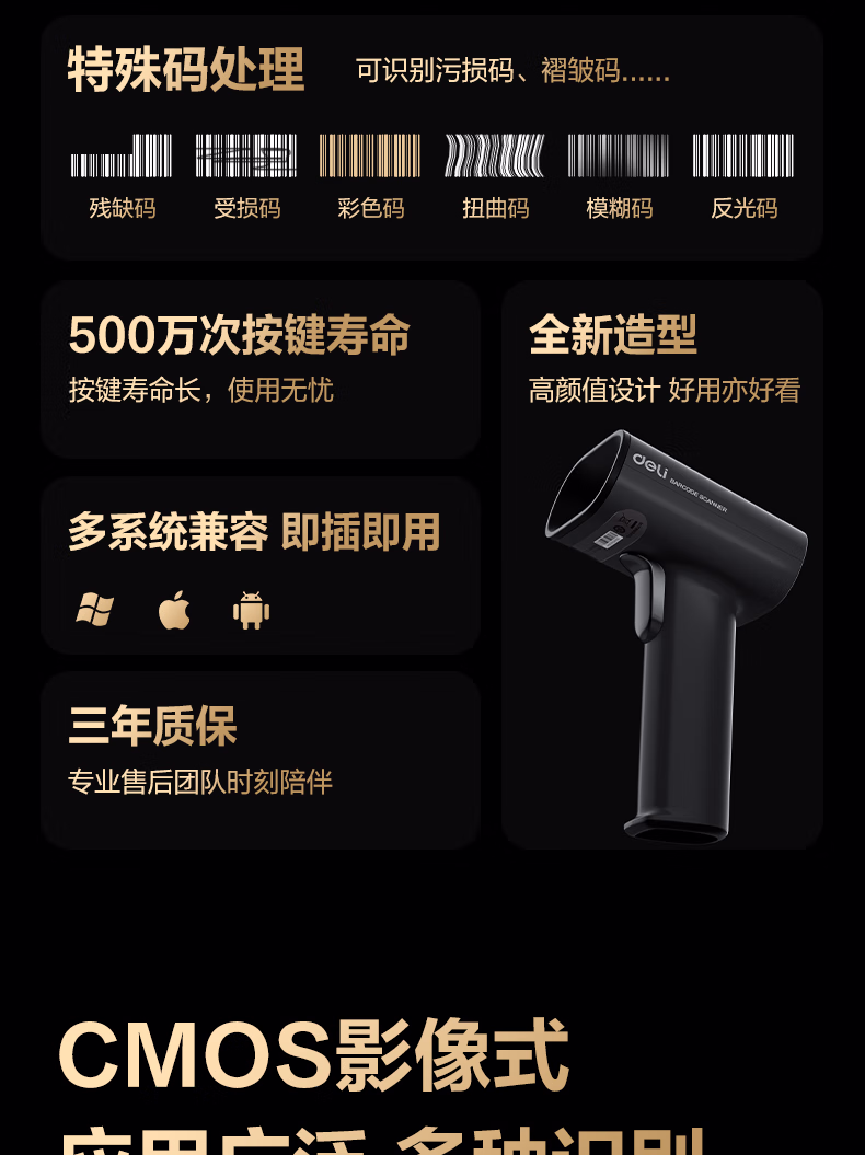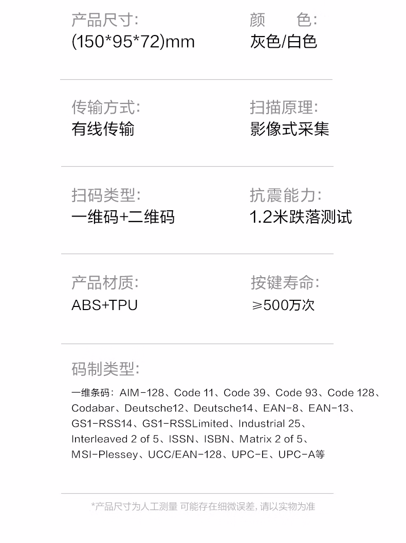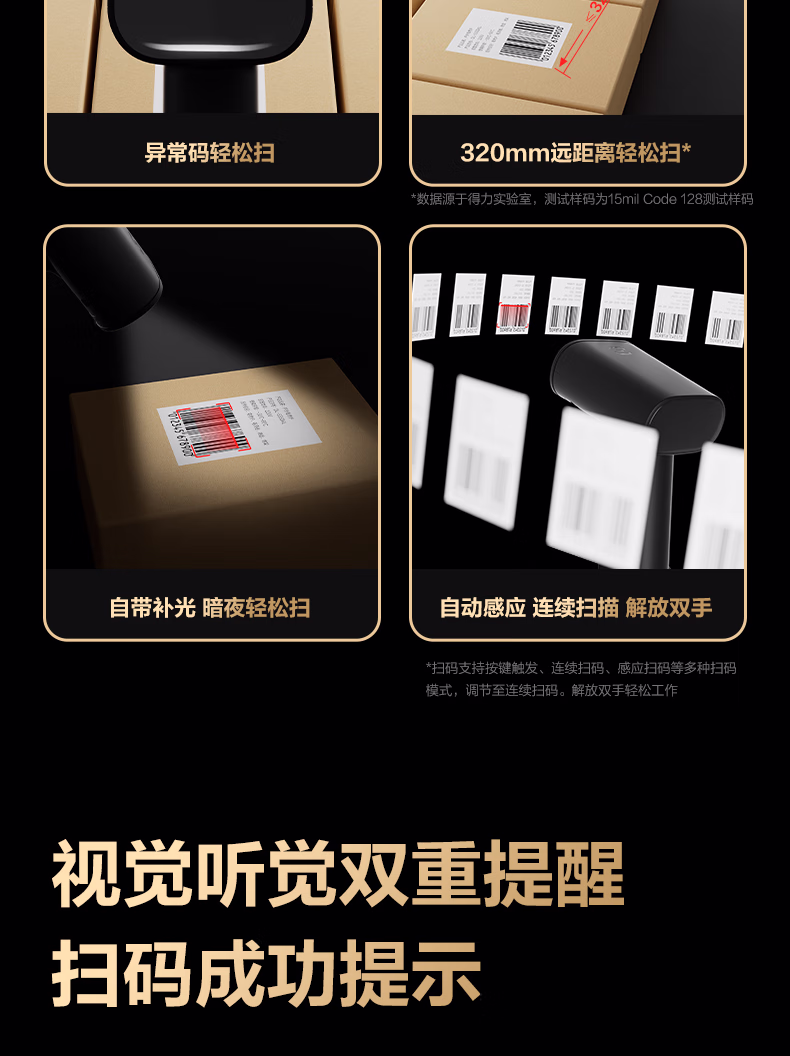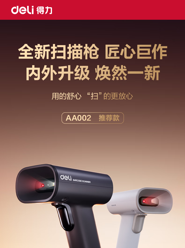 包装清单  :   得力扫码枪 扫描枪二维药品追溯医保支付查快递物流查询扫码设备商品条码扫描器全新升级时尚外观AA002