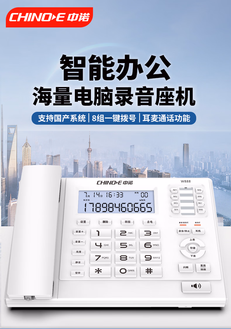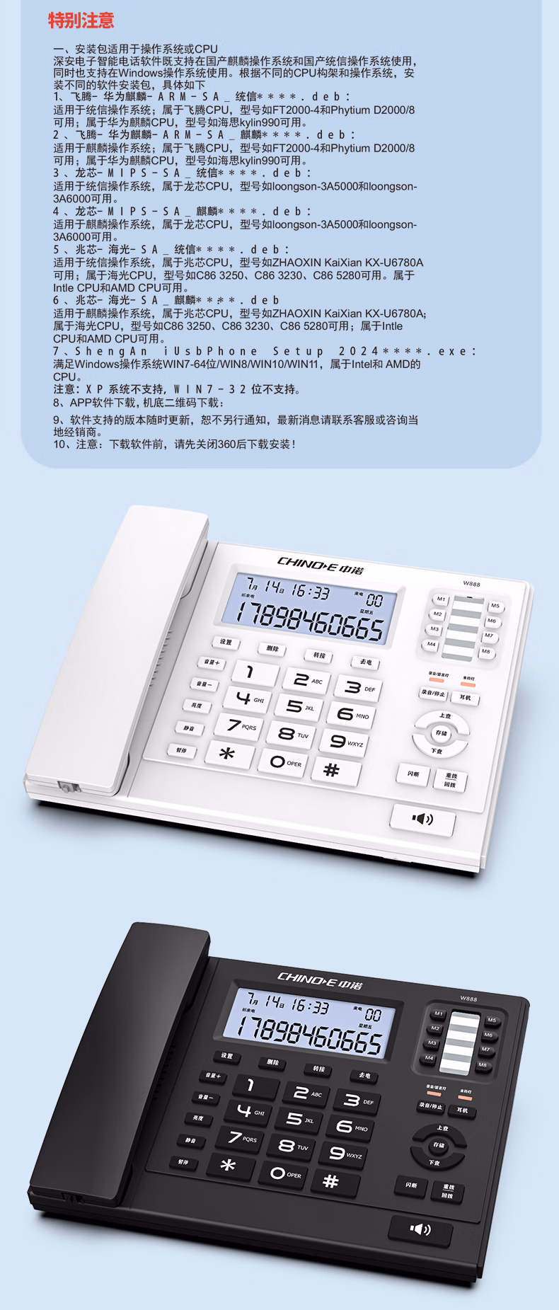 包装清单  :   中诺录音电话机座机支持国产麒麟统信系统电脑专业软件管理客服智能屏幕拨打耳机固定办公W888黑色