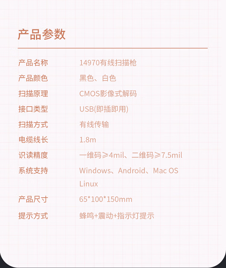 包装清单  :   得力扫码枪 二维码扫描枪 药品追溯条码扫描 快递物流查询商品超市医保支付秒速识别LED补光灯14970