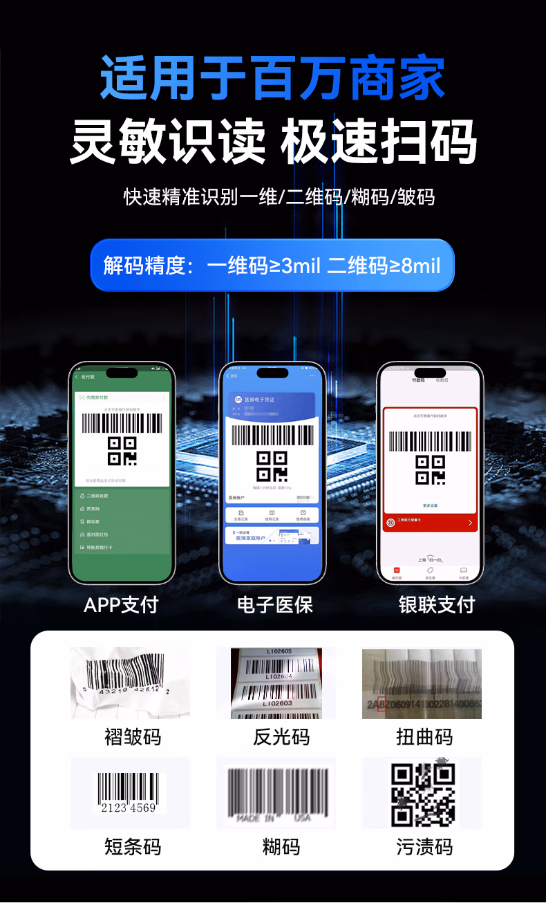 包装清单  :   科密(comet)无线扫码扫描枪 药品追溯超市收银支付收款医保UDI码 仓库快递物流盘点一二维码条码器三星