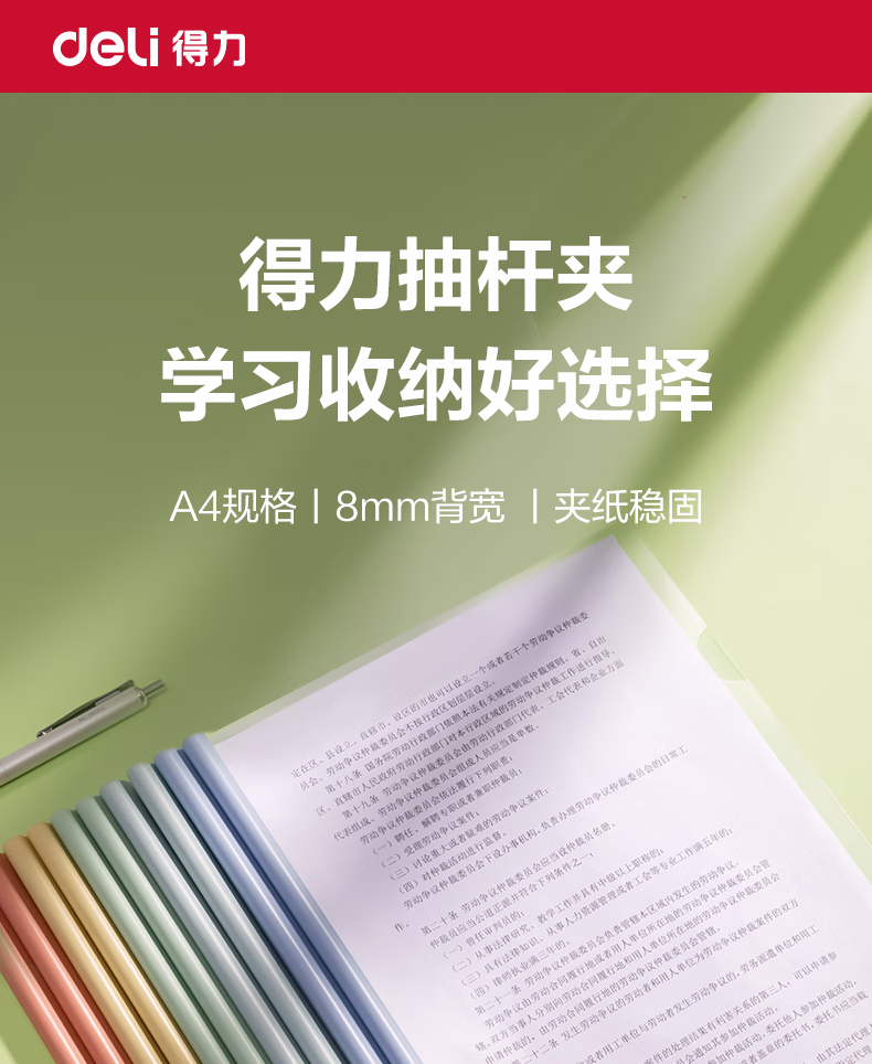 包装清单  :   得力(deli)彩色水滴杆抽杆夹10只装 A4/8mm文件夹拉杆夹试卷夹资料册报告夹 PP608