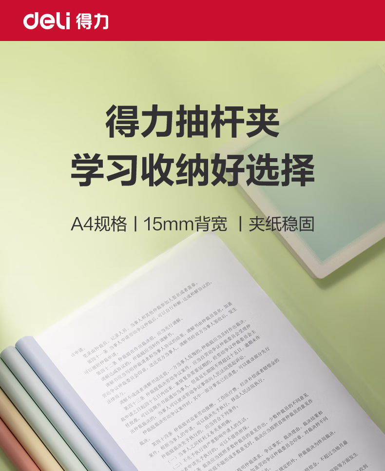 包装清单  :   得力(deli)彩色水滴杆抽杆夹5只装 A4/15mm文件夹拉杆夹学生试卷夹简历产检报告收纳夹 PP615