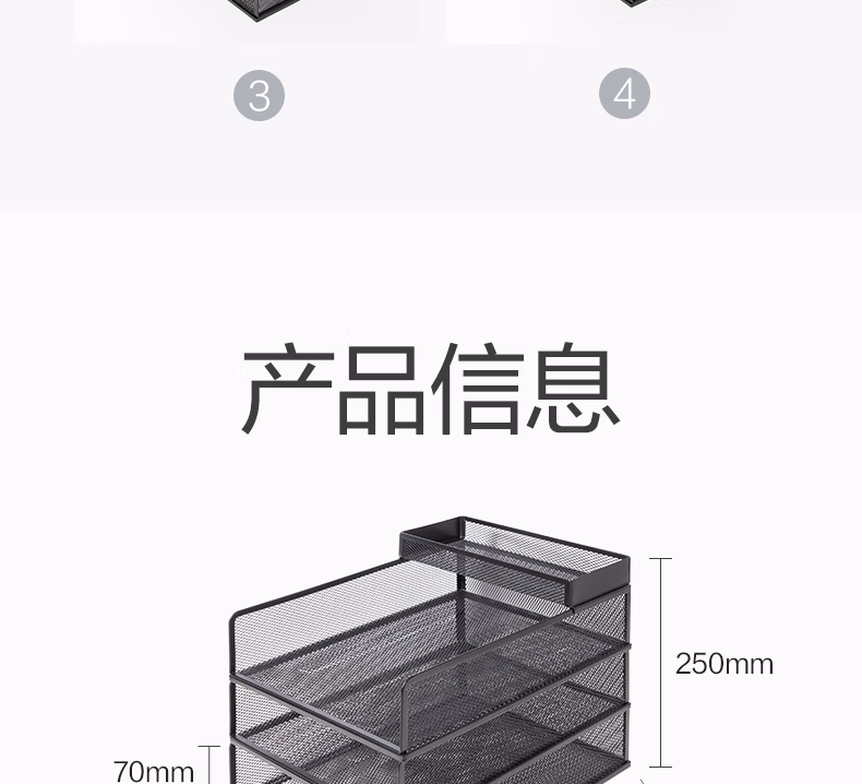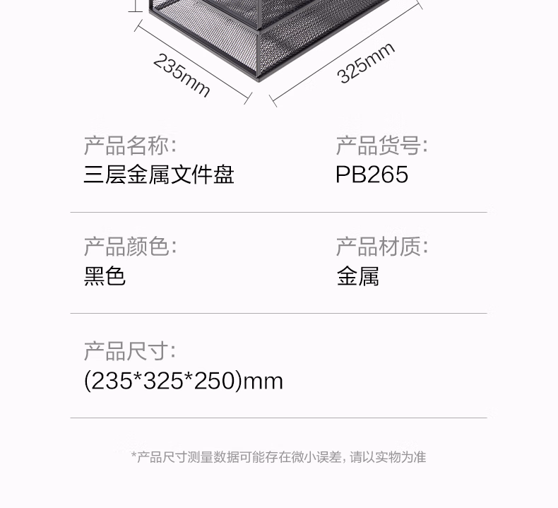 包装清单  :   得力(deli)三层竖版金属文件座 办公桌文件架置物架 文件托盘 桌面文件框收纳架 PB265黑