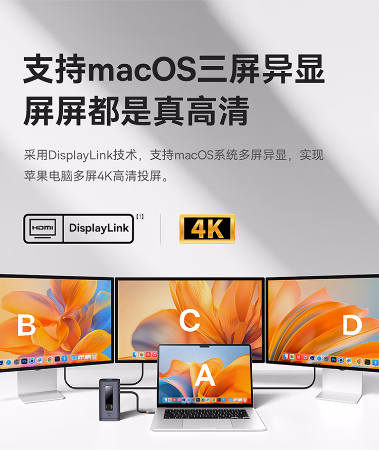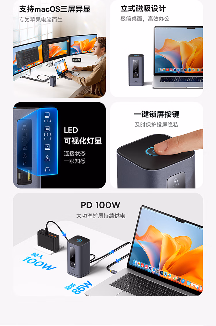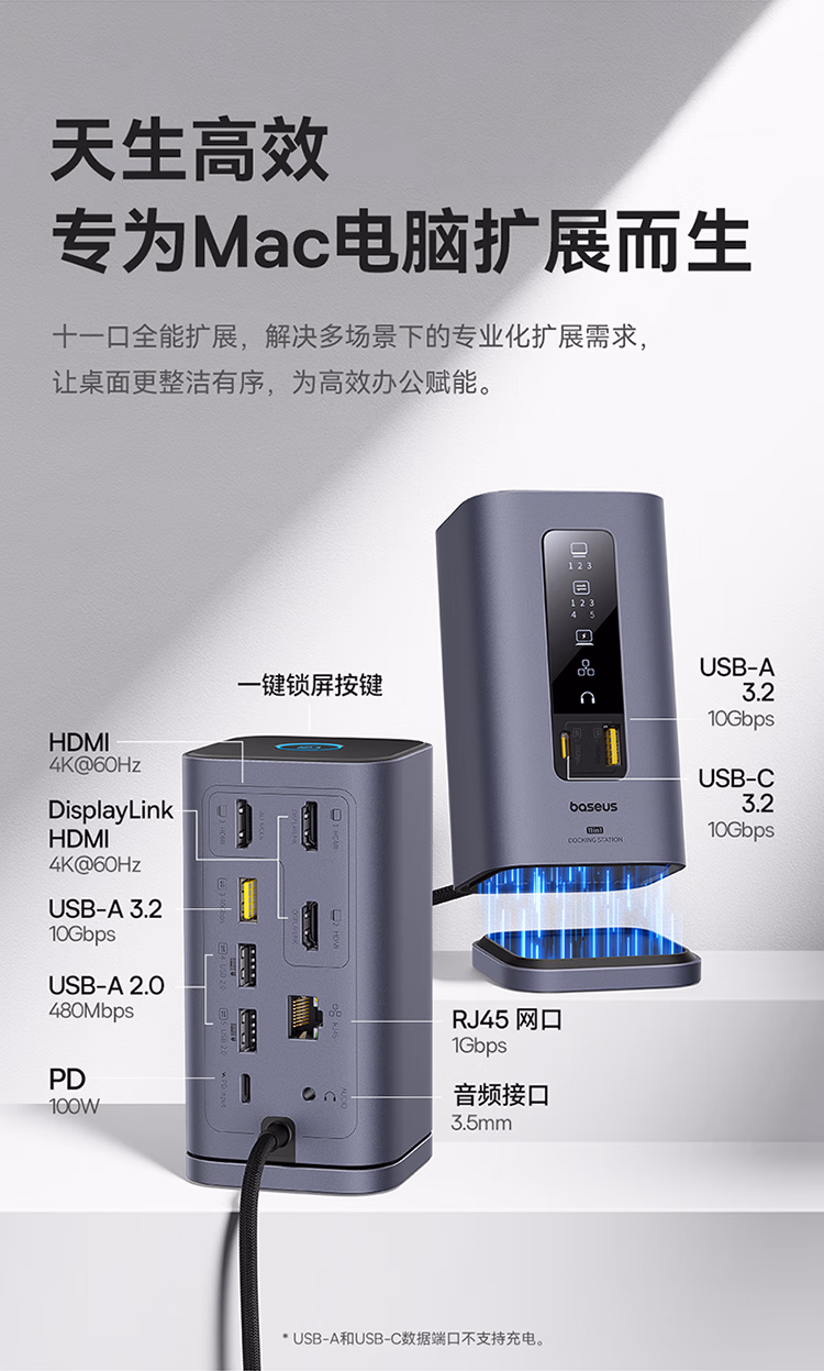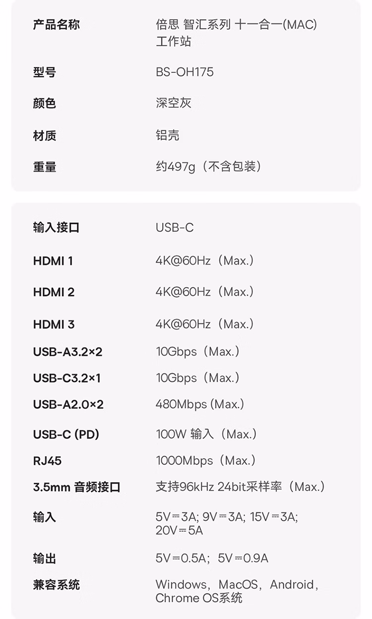 包装清单  :   倍思 扩展坞桌面Type-C拓展坞充电器HDMI双视频4K转换器网口3.2分线器立式苹果Mac华为笔记本电脑