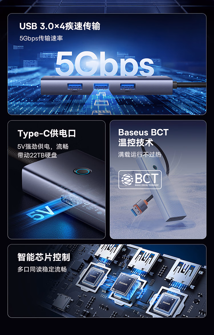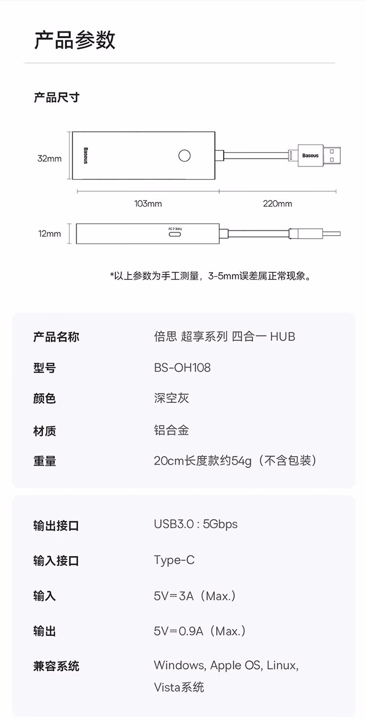 包装清单  :   倍思USB3.0扩展坞拓展坞充电器 分线器集线器转接头通用华为联想惠普笔记本电脑带Type-C供电