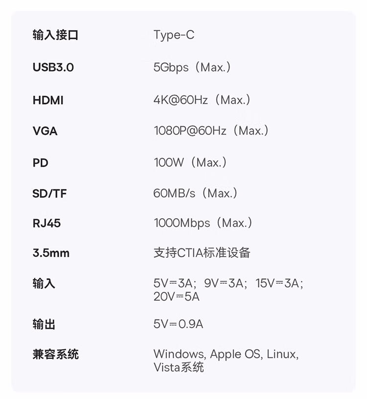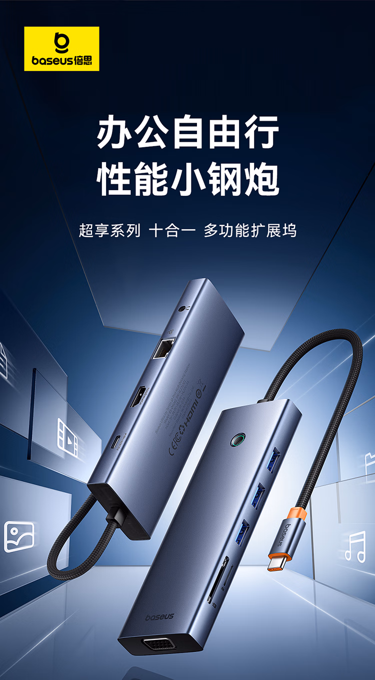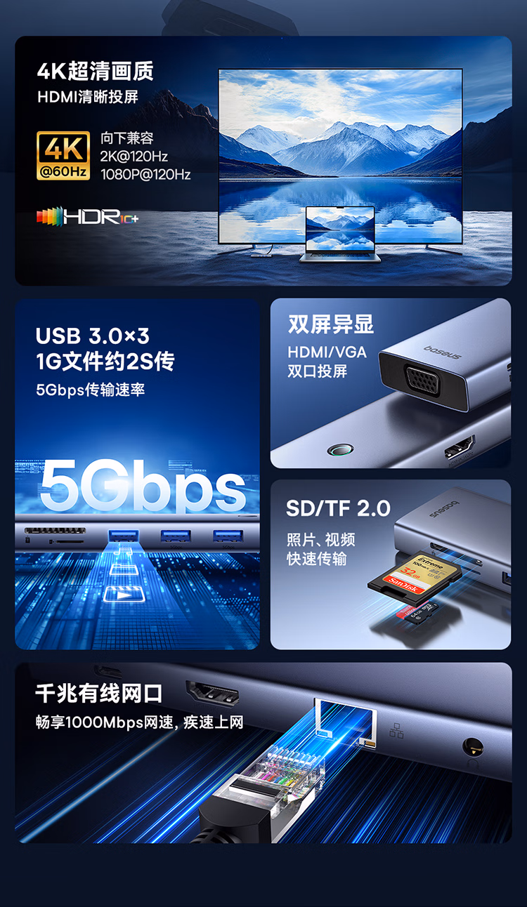 包装清单  :   倍思拓展坞Type-C扩展坞充电器分线转换器千兆网口4K60Hz投屏PD100W读卡通用雷电4苹果华为电脑