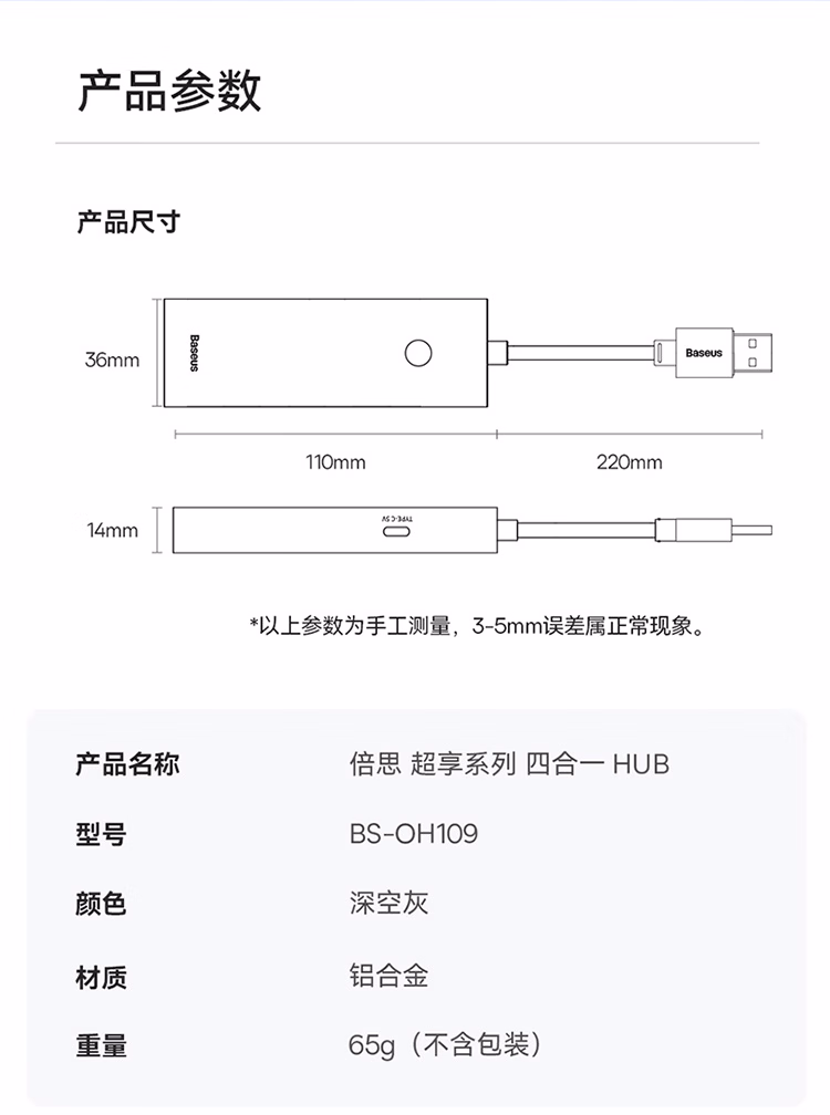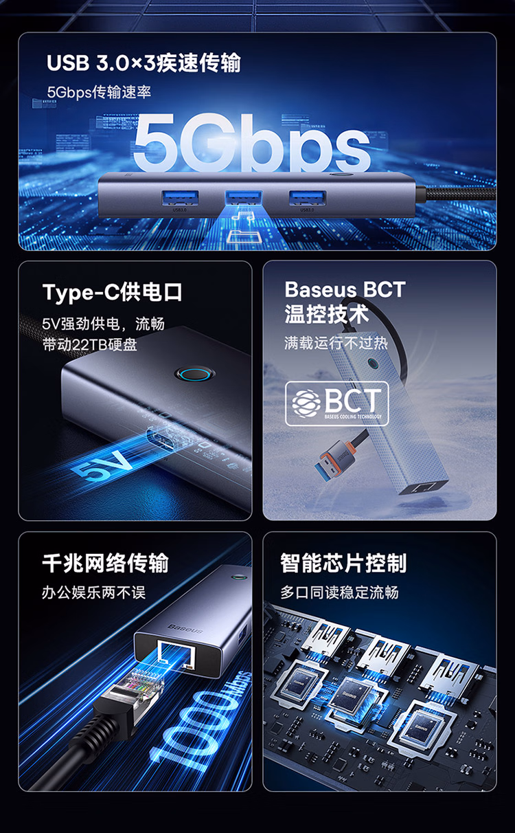 包装清单  :   倍思USB3.0扩展坞拓展坞充电器 转千兆网口卡线转接头分线转换器雷电4通用苹果华为笔记本电脑车载