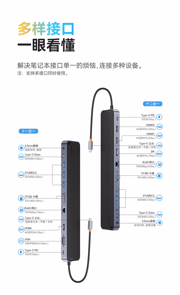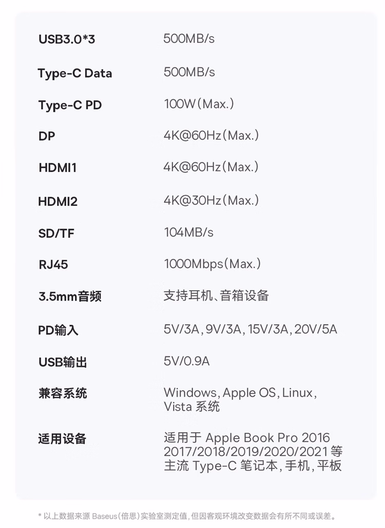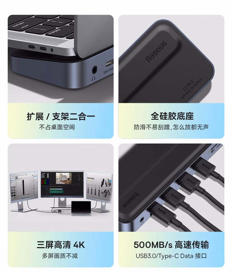 包装清单  :   倍思 拓展坞Type-C扩展坞充电器双HDM/DP投屏IUSB3.0分线器HUB投屏通用雷电4笔记本电脑车载
