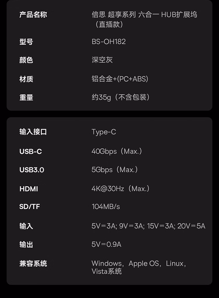 包装清单  :   倍思Type-C扩展坞苹果直插式拓展坞HUB分线转换器4K投屏双读卡通用雷电4苹果笔记本电脑