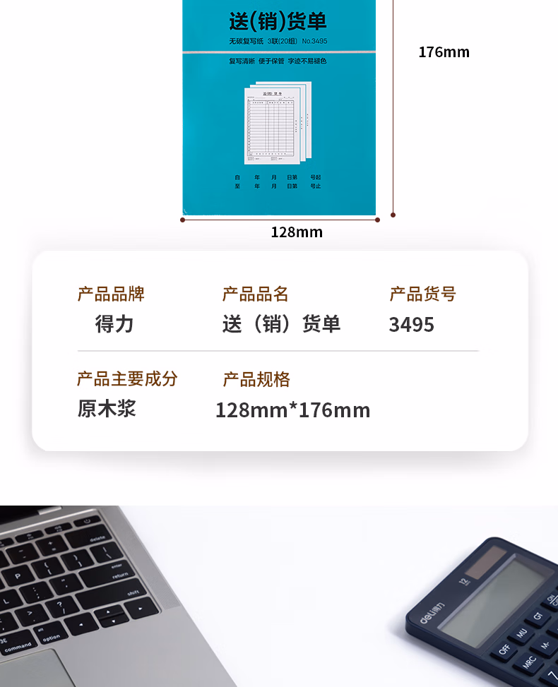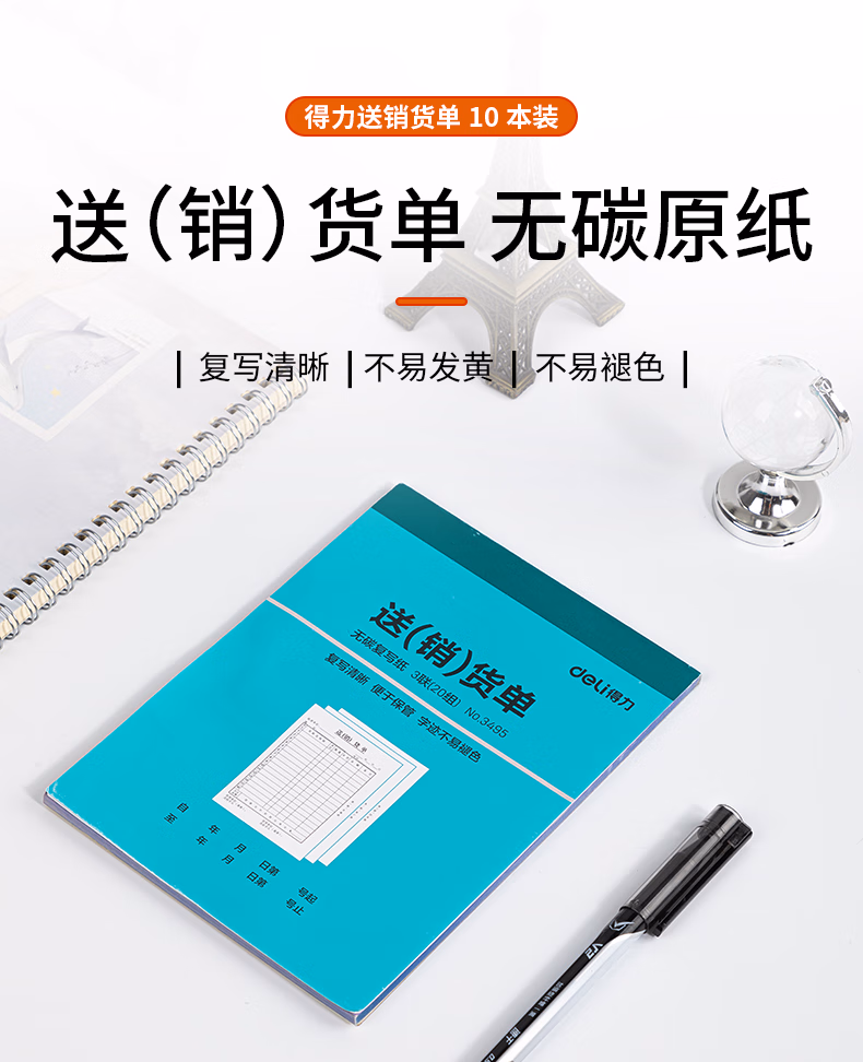 包装清单  :   得力(deli)【超级爆款】三联竖版送货销货清单 无碳复写单据 财会用品 经济款10本装3495