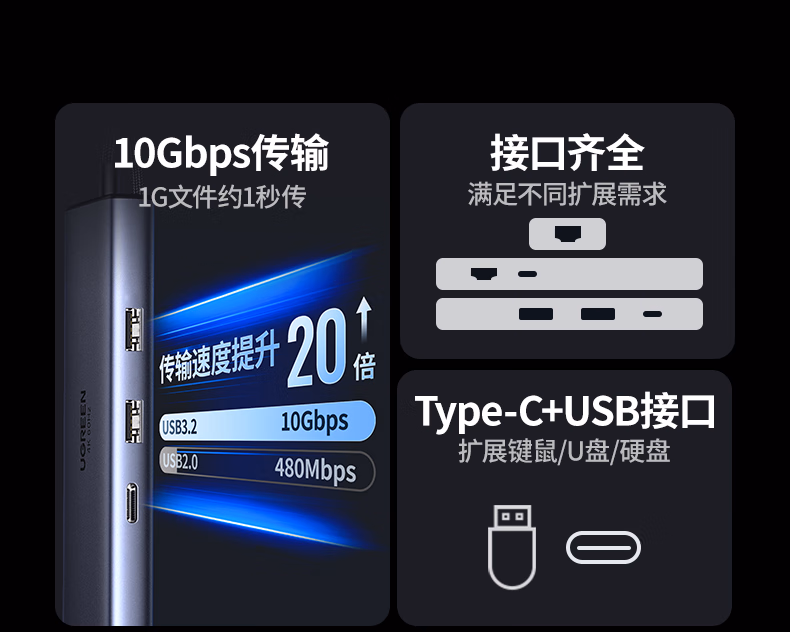 包装清单  :   绿联Type-C3.2扩展坞千兆网口转接头4K60Hz拓展坞10G高速HUB分线器HDMI转换适用苹果MacBook Air/华为