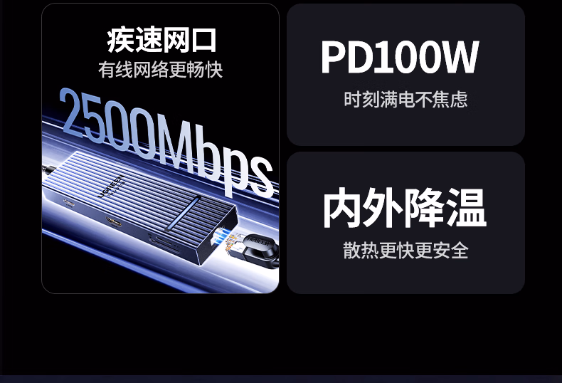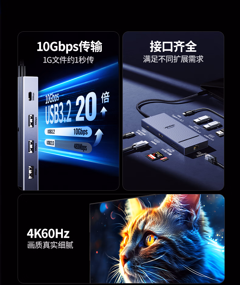 包装清单  :   绿联Type-C3.2鳍纹扩展坞2.5G网口分线器HDMI2.0转接器10G拓展坞4K60Hz适用华为苹果MacBook/Macmini