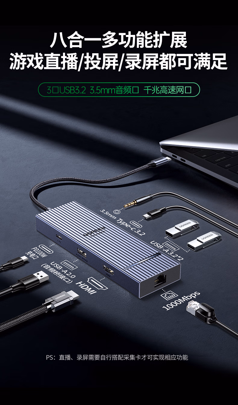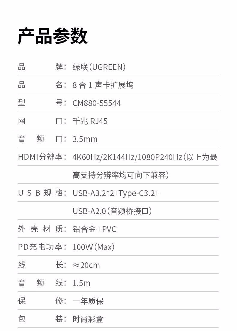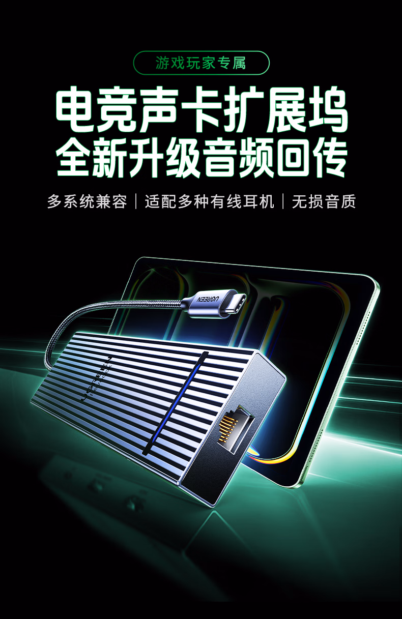 包装清单  :   绿联Type-C3.2转接器平板扩展坞游戏吃鸡音频耳机转接器千兆网口4K高清适用于苹果ipad华为安卓手机