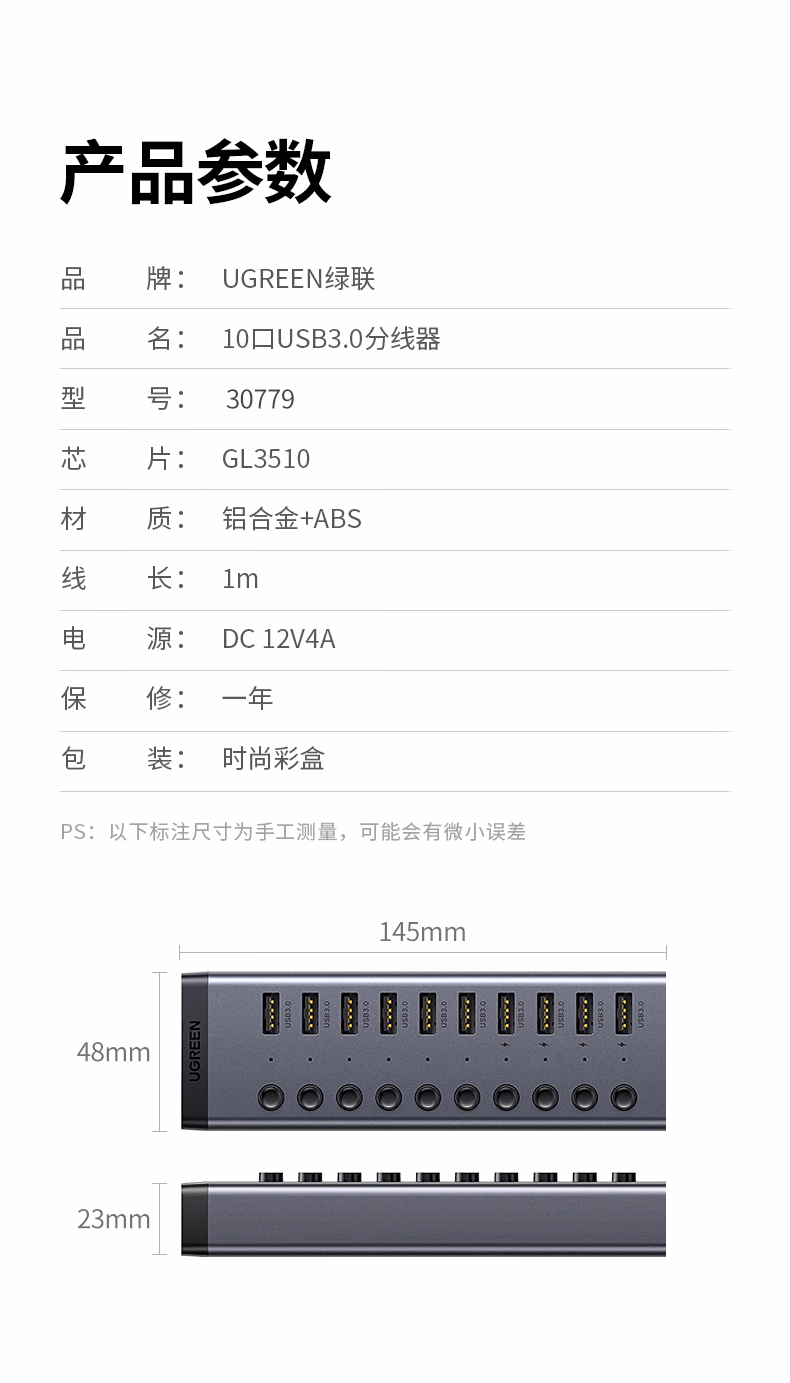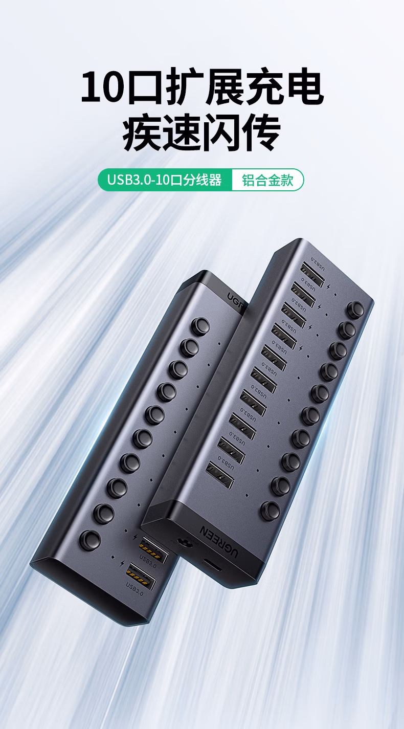 包装清单  :   绿联USB3.0扩展器分线器 高速10口拓展坞HUB集线器扩展笔记本台式电脑接口一拖十转换接器延长线配电源