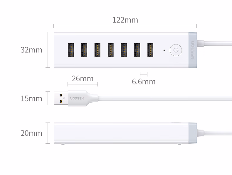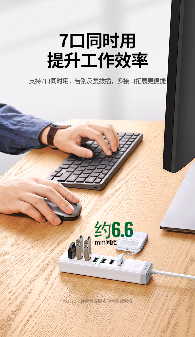 包装清单  :   绿联 USB3.0分线器高速7口HUB扩展转换器扩展坞延长线 适用笔记本台式电脑手机刷机群控一拖七带供电