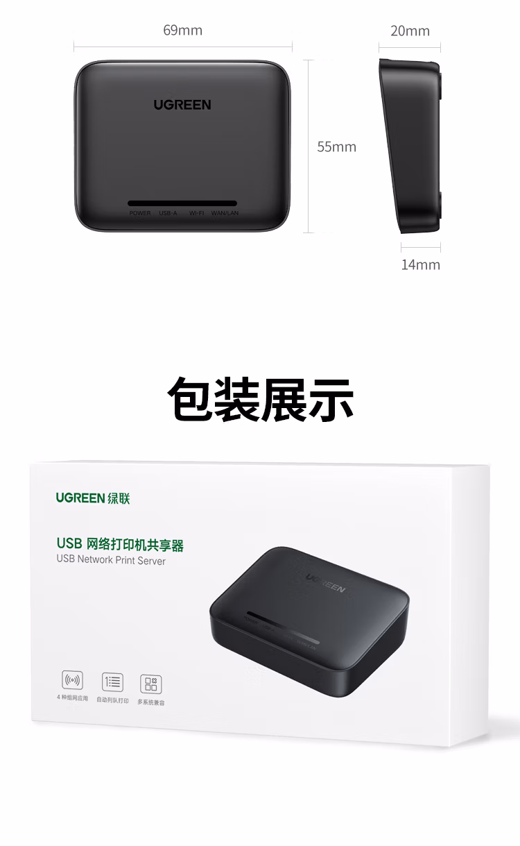 包装清单  :   USB无线wifi网络打印服务器局域网免驱打印机盒子共享器接收器适配器 支持针式热敏喷墨激光10941