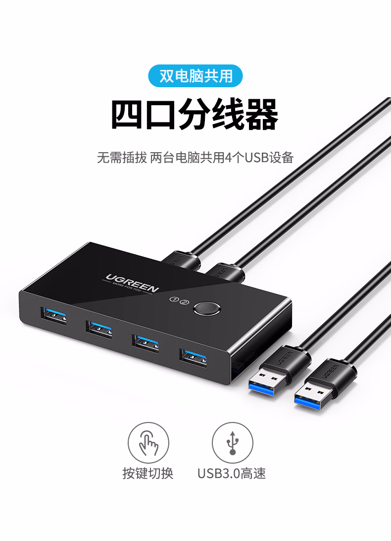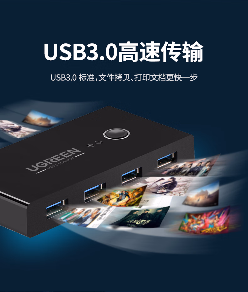 包装清单  :   USB3.0切换器二进四出打印机共享器 两台笔记本电脑主机共用键盘鼠标U盘四口分线器30768