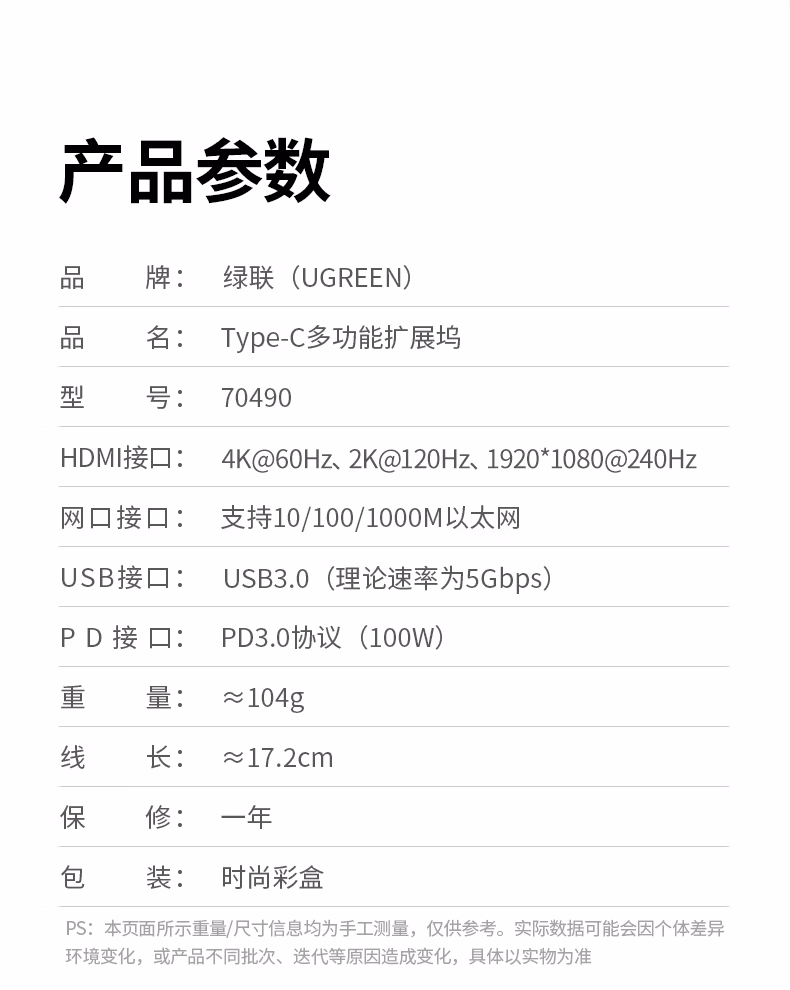 包装清单  :   Type-C扩展坞USB-C雷电4拓展坞HDMI网线转接头PD快充充电器分线器读卡通用苹果Mac电脑笔记本iPad