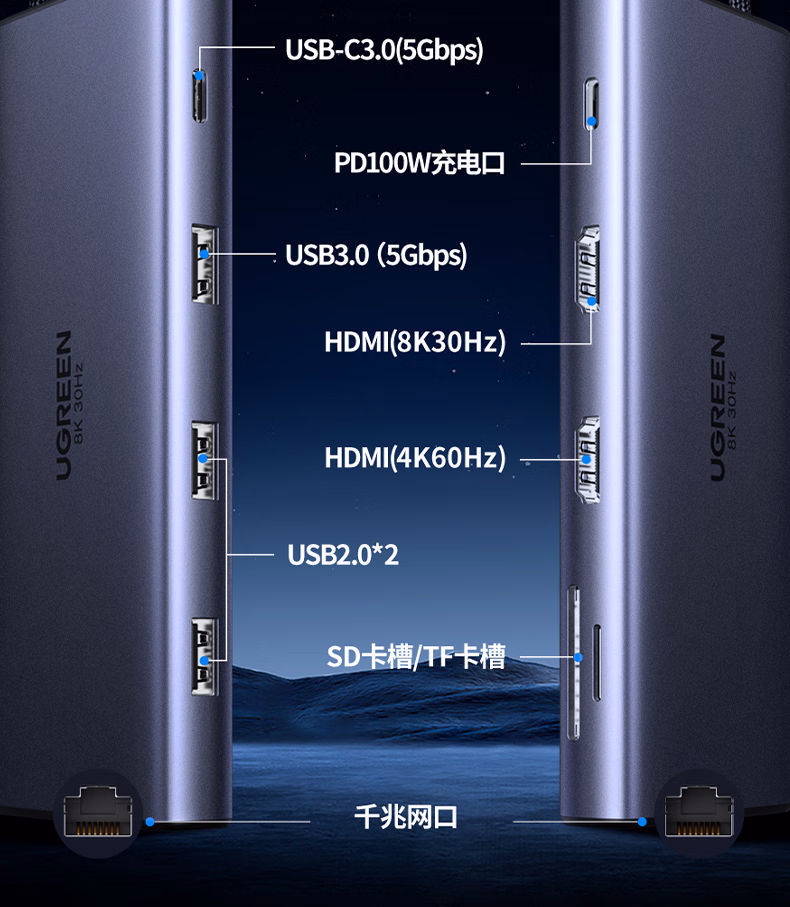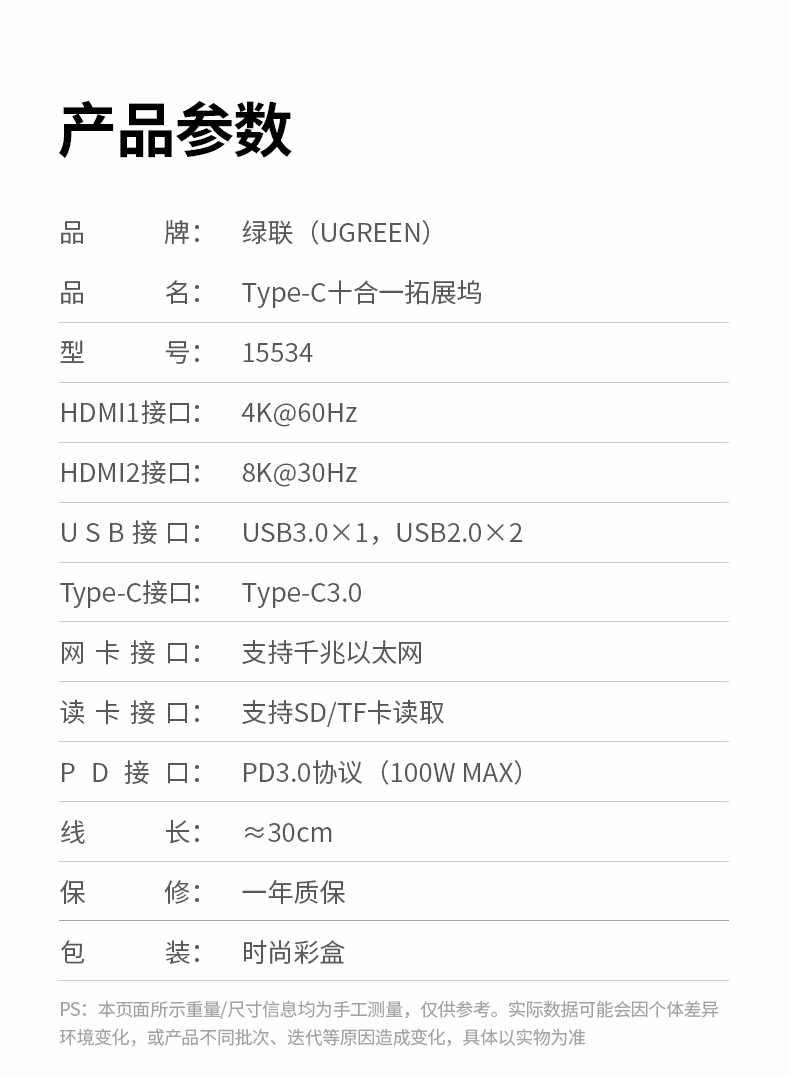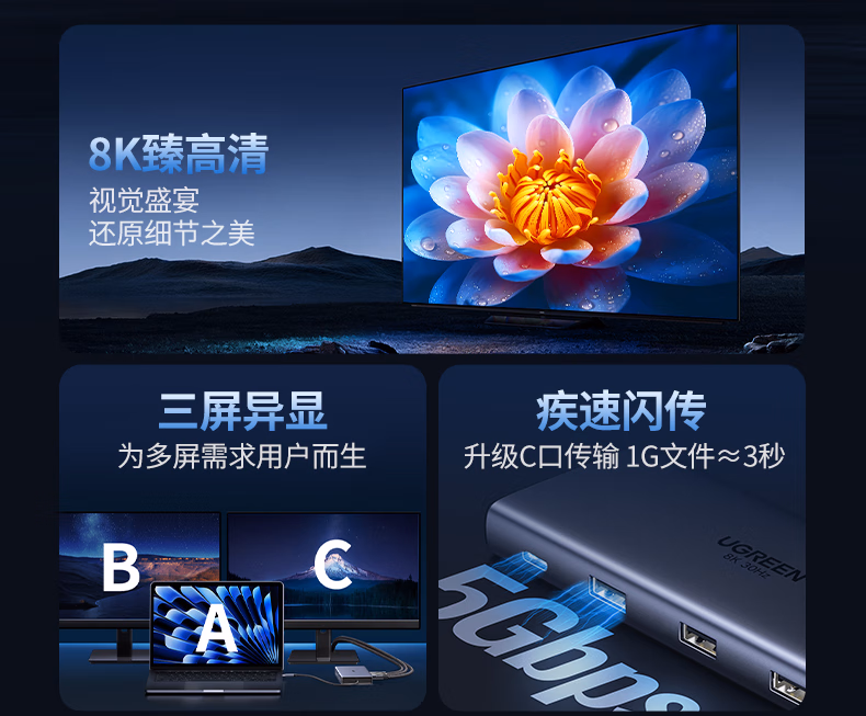 包装清单  :   Type-C双HDMI三屏异显扩展坞USB-C雷电4/5拓展坞8K高清多屏炒股扩展适用华为联想笔记本支持MST