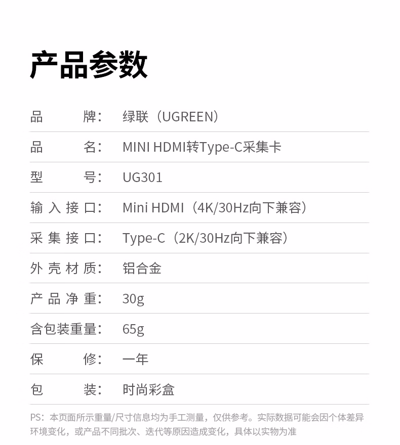 包装清单  :   Mini HDMI视频采集卡4K高清输入 MS2130适用单反摄像机相机 笔记本电脑手机平板抖音直播 转Type-c