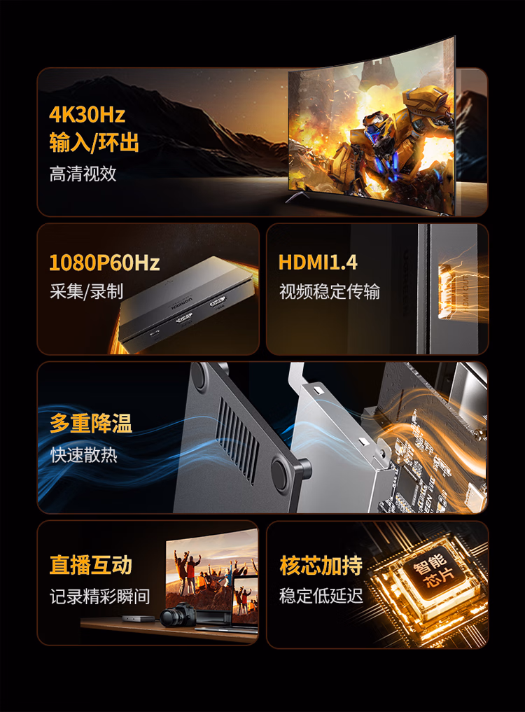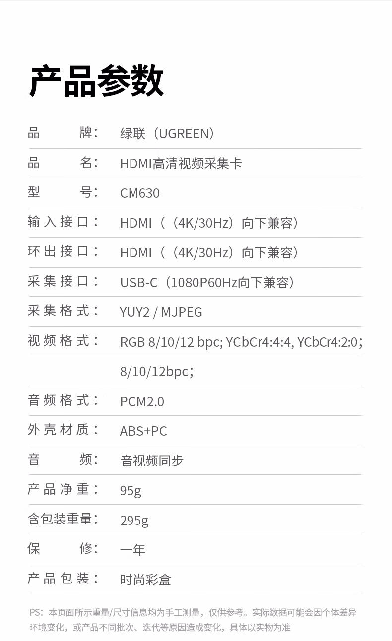 包装清单  :   HDMI视频采集卡4K高清环出 适用尼康索尼佳能相机直播Switch2/PS5手机iPad平板USB电脑游戏录制器