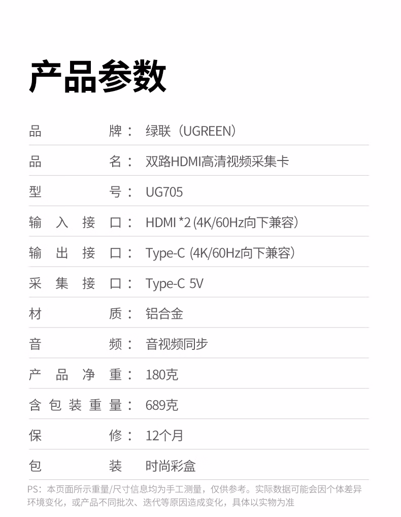 包装清单  :   HDMI双路视频采集卡4K60Hz高清多机位2路RGB24适用Switch2/PS5索尼相机手机电脑游戏直播录制35869