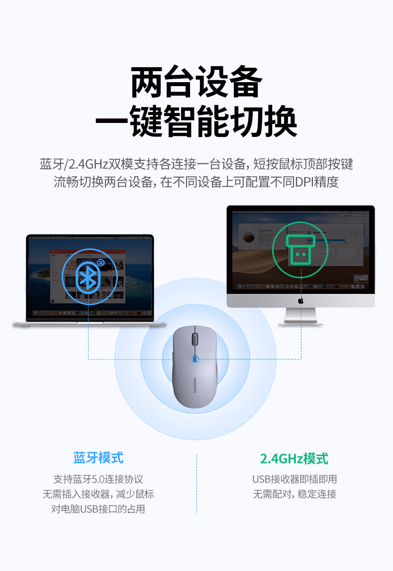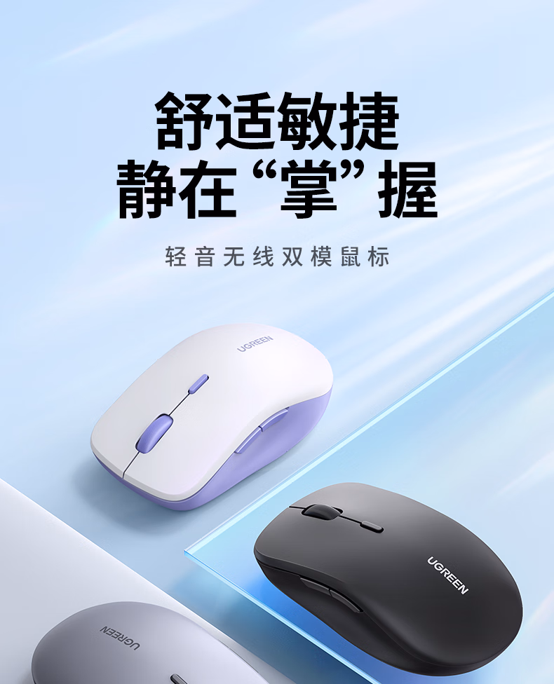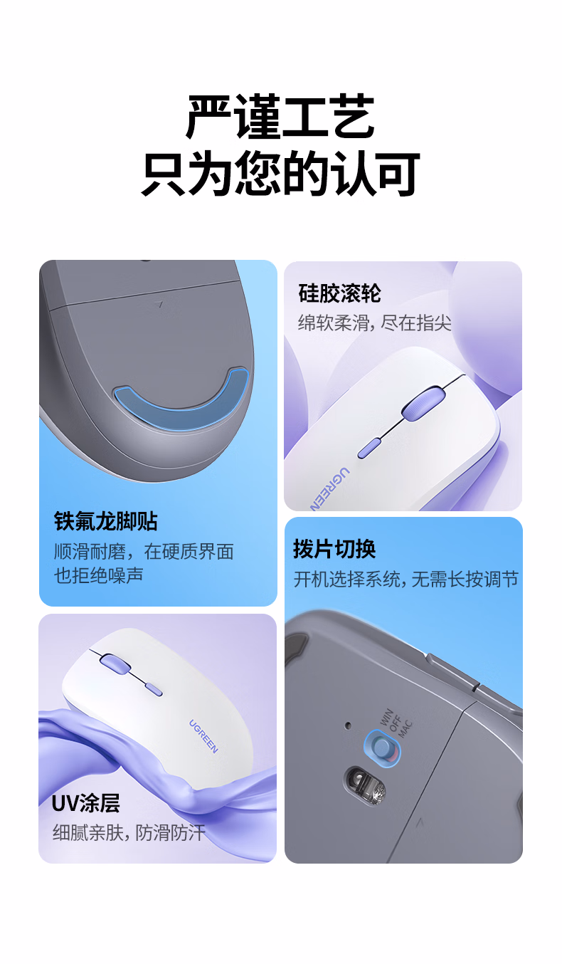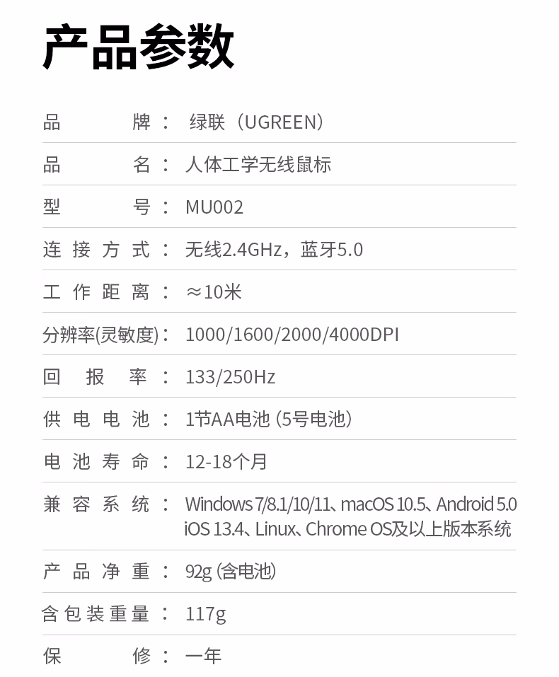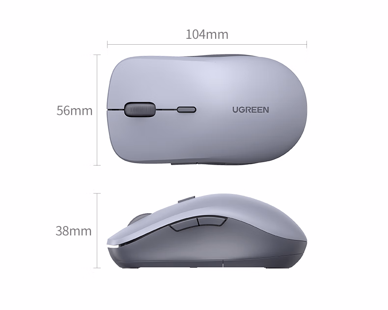 包装清单  :   绿联 无线鼠标 蓝牙鼠标 适用苹果Mac华为Matebook笔记本电脑iPad平板鼠标 台式机轻音办公双模鼠标
