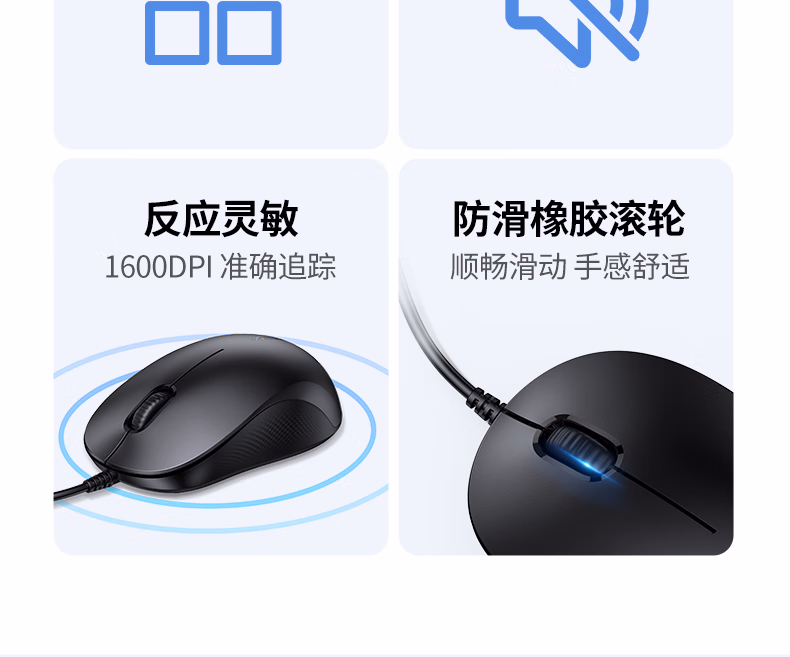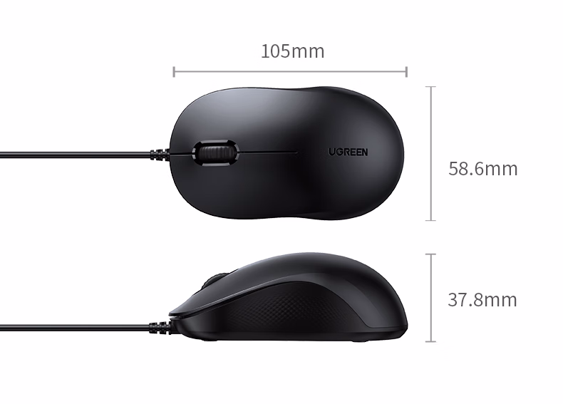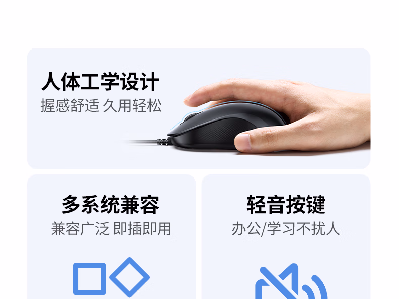包装清单  :   绿联有线鼠标 轻音办公USB鼠标 对称鼠标 适用笔记本电脑台式机家用办公便携鼠标 即插即用 线长1.65米