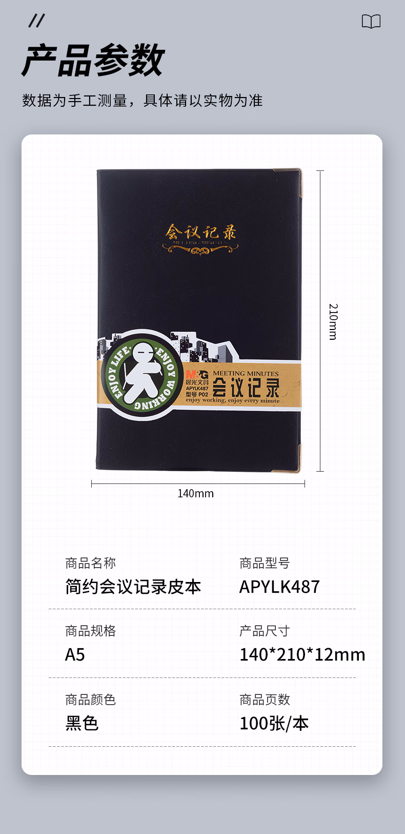 包装清单  :   会议记录本皮面商务a5笔记本本子软皮记录记事本 100张厚日程本办公用品黑1本APYLK487