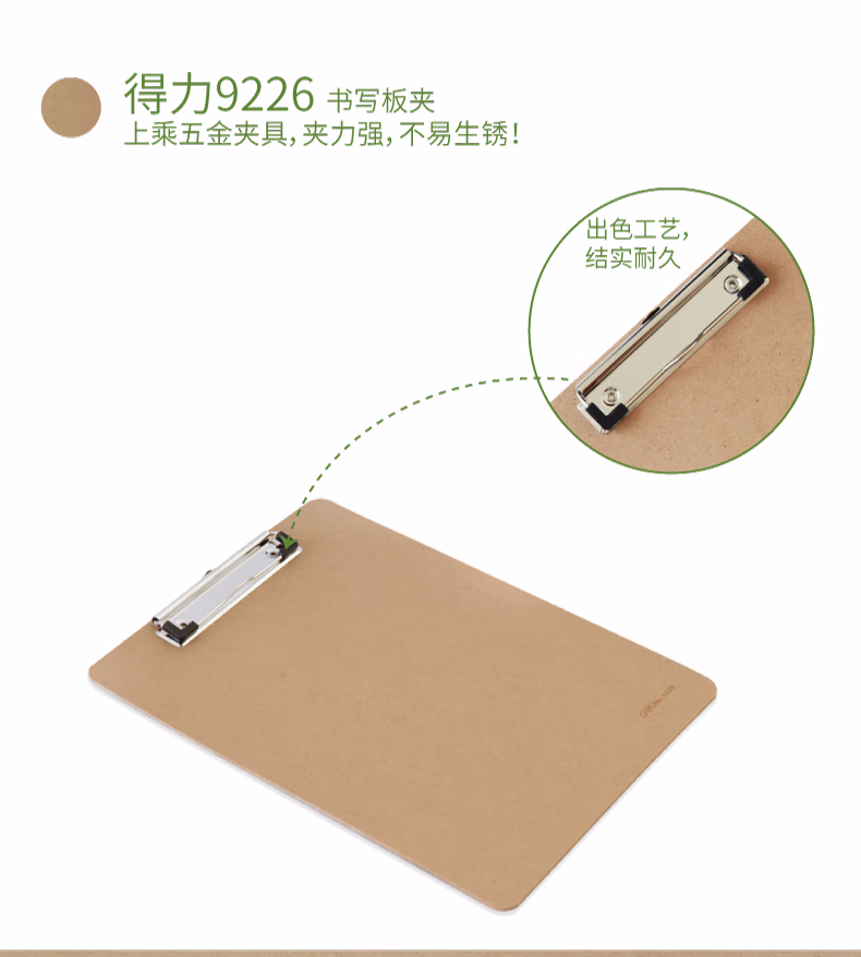 包装清单  :   得力(deli)A4木质感金属便携强力夹书写板夹/写字垫板试卷资料收纳夹 棕色9226 办公用品