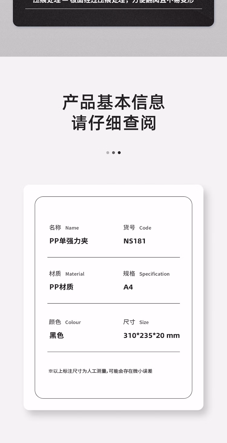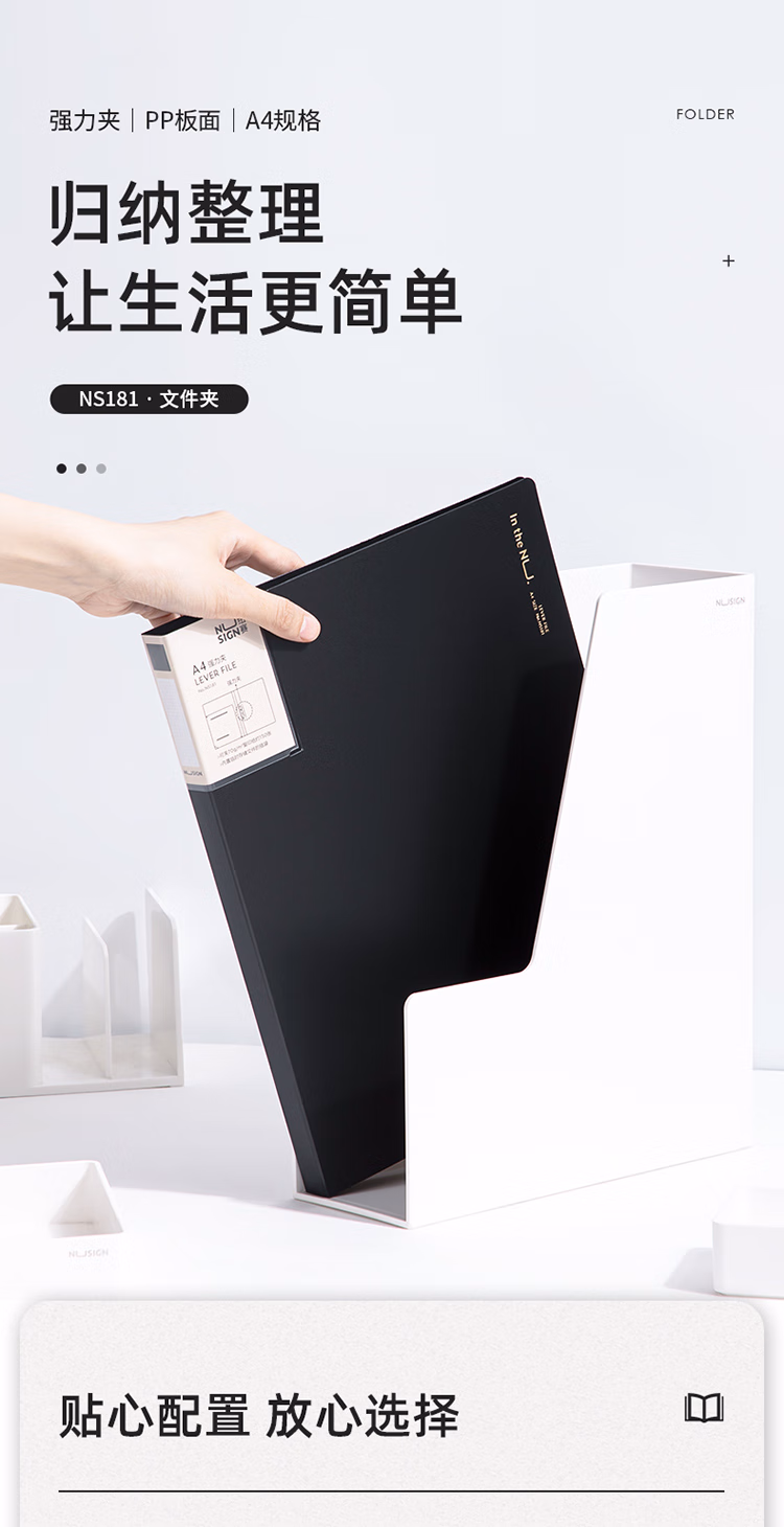 包装清单  :   纽赛(NUSIGN)文件夹会议夹 单强力夹加厚资料报告商务板夹文件收纳办公用品 曜石黑NS181