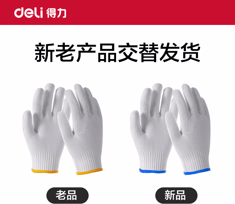 包装清单  :   得力(deli)劳保手套棉纱线手套耐磨防滑透气劳工工地工作干活汽修加密黄边100付 LQ631