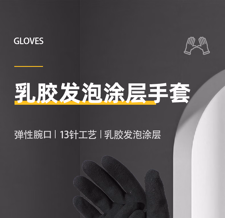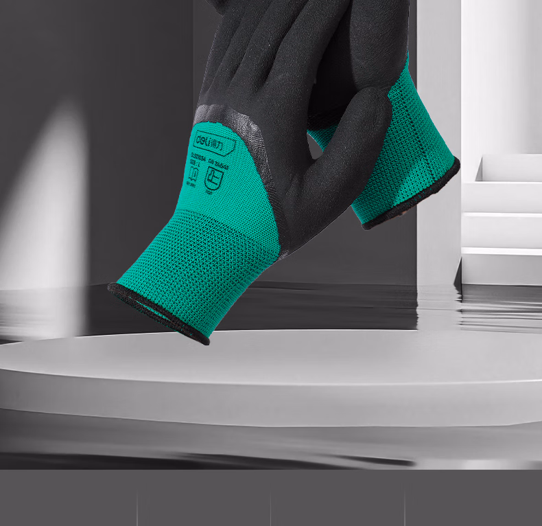包装清单  :   得力(deli)浸胶劳保手套发泡乳胶纹防滑透气建筑防护防水防油耐磨手套12副 黑