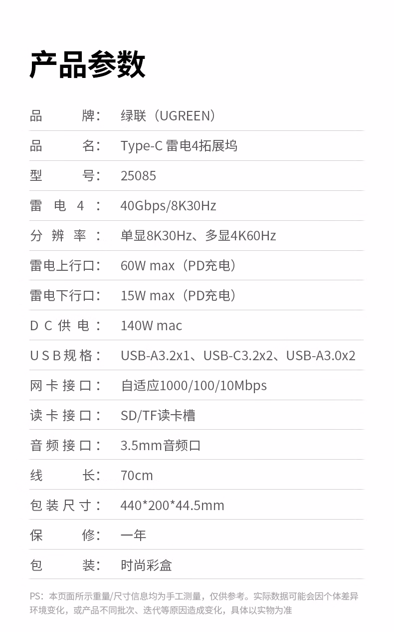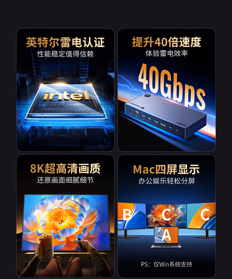 包装清单  :   绿联TB雷电4扩展坞Thunderbolt雷雳USB48K四屏异显Type-C多屏拓展40G适用MacbookM1234pro/max Macmini