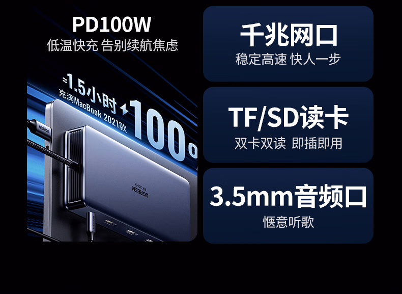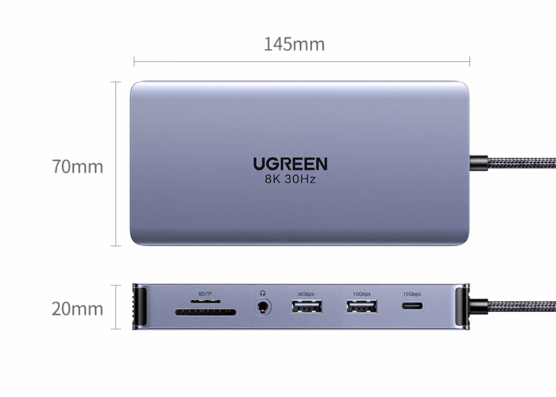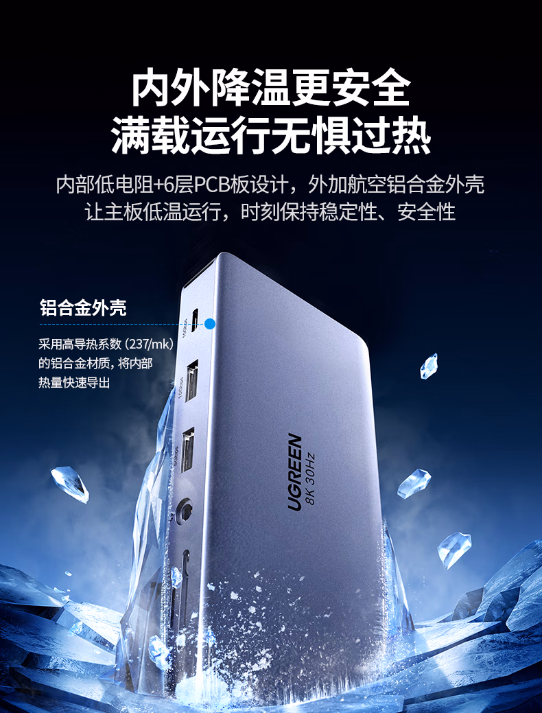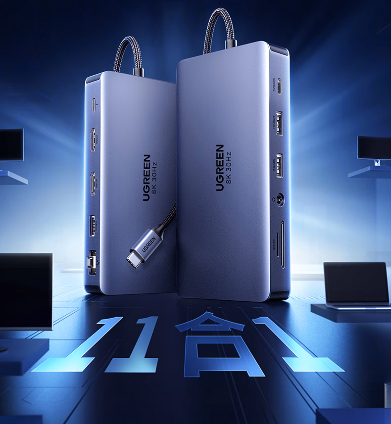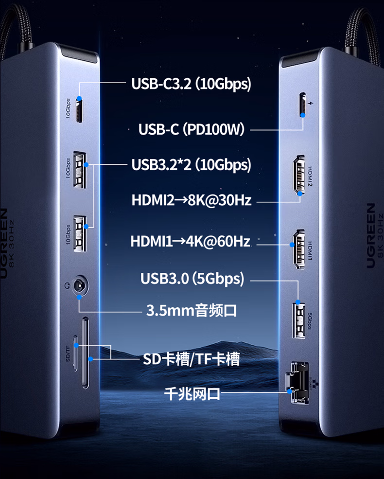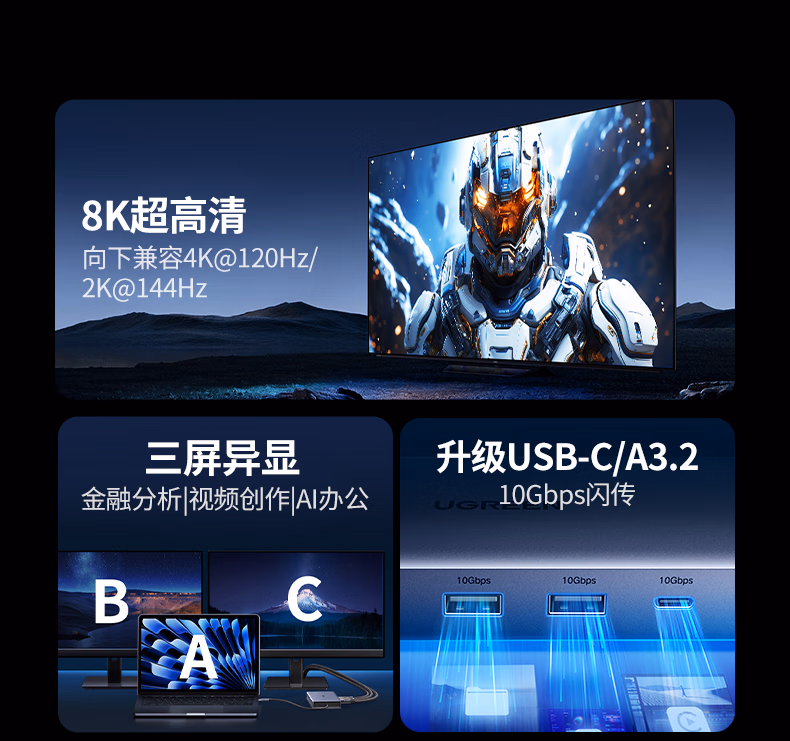包装清单  :   绿联Type-C3.2双HDMI三屏异显扩展坞雷电4/5拓展坞10G转接头8K多屏扩展器144Hz高刷适用联想华为电脑
