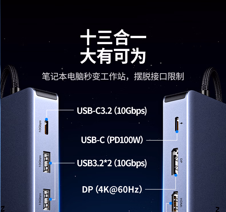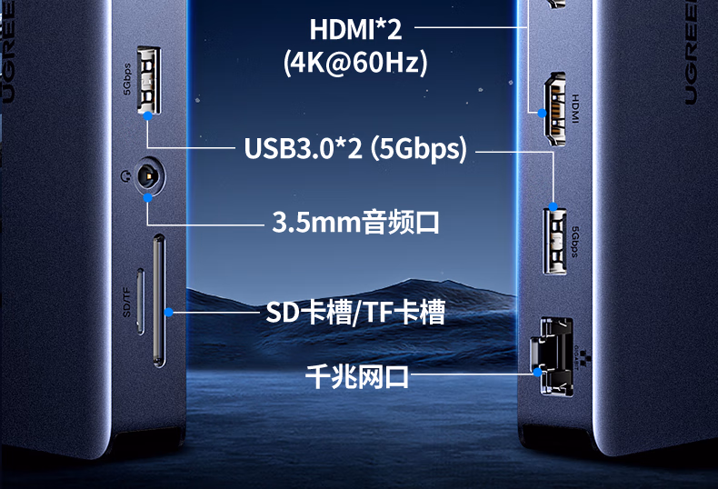 包装清单  :   绿联Type-C3.2双HDMI/DP四屏异显扩展坞USB-C雷电4拓展坞10G转接4K60Hz多屏扩展适用联想华为电脑MST