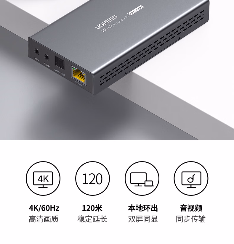 包装清单  :   HDMI延长器120米 4K60HZ高清单网线RJ45转HDMI视频传输器 本地环出音频分离信号放大器一对装