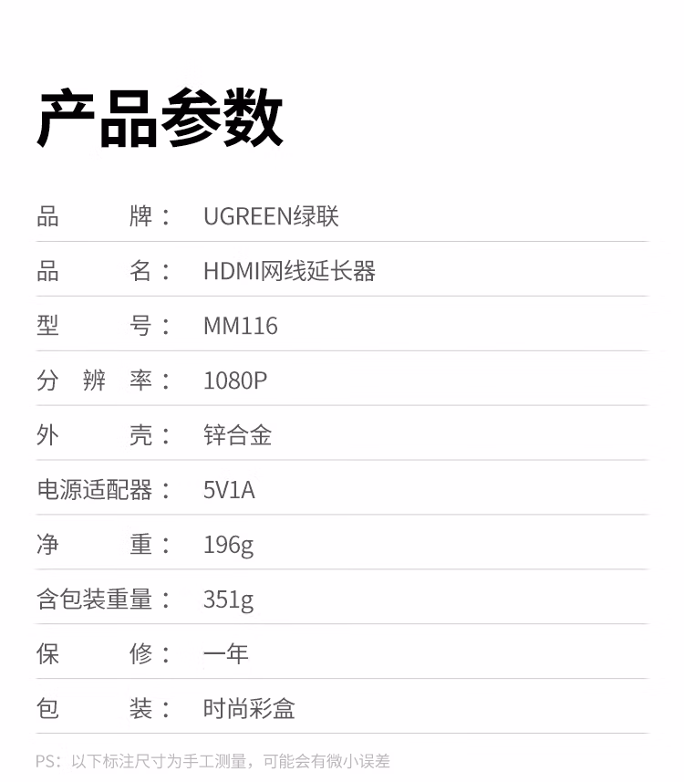 包装清单  :   HDMI延长器120米 hdmi转RJ45网口转换器 单网线网络高清1080P视频传输信号放大连接器 接收端