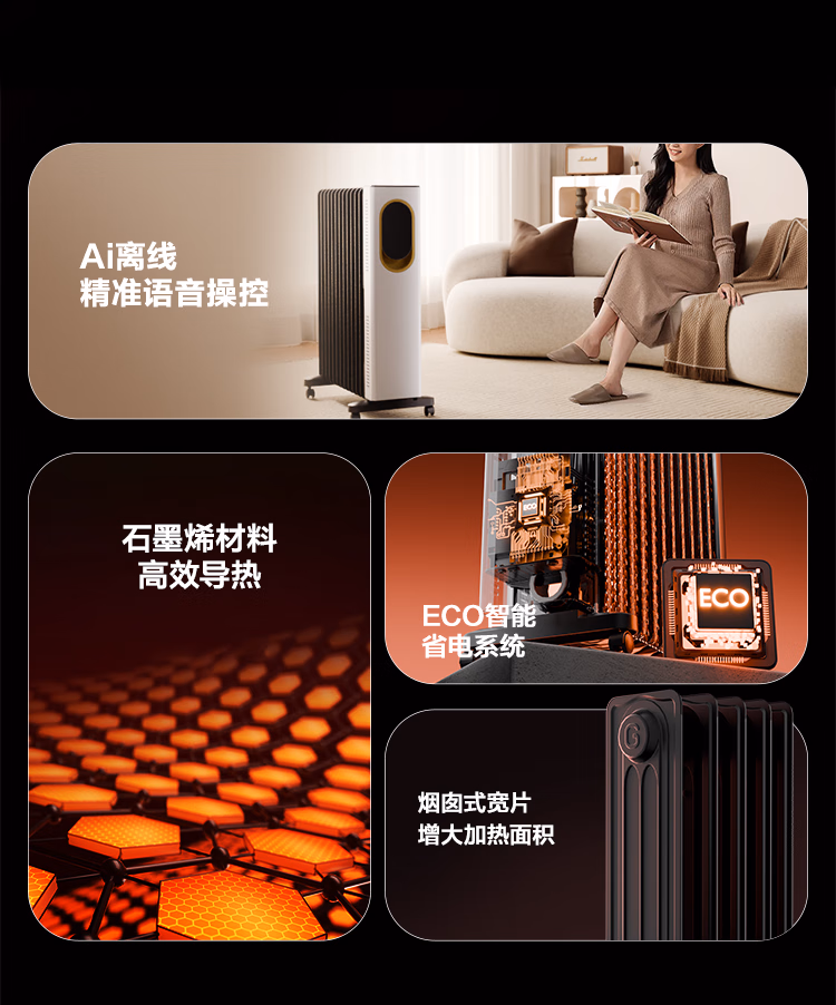 包装清单  :   格力暖岁电油汀AI语音石墨烯取暖器家用电暖器电暖气片加热器大面积全屋升温速热烤火炉NY23-X6022BV-M
