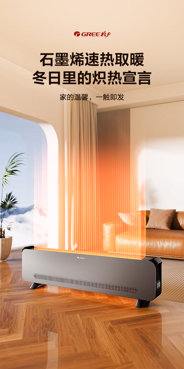 包装清单  :   格力(GREE)【石墨烯取暖器】移动地暖取暖器家用电热电暖器电暖气暖风机浴室防水 NJF-X9120