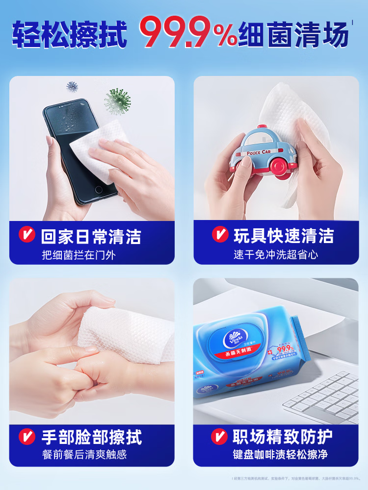 包装清单  :   维达(Vinda)杀菌湿巾 80片*12包 杀菌率99.9%加厚升级湿巾大包卫生湿巾湿纸巾