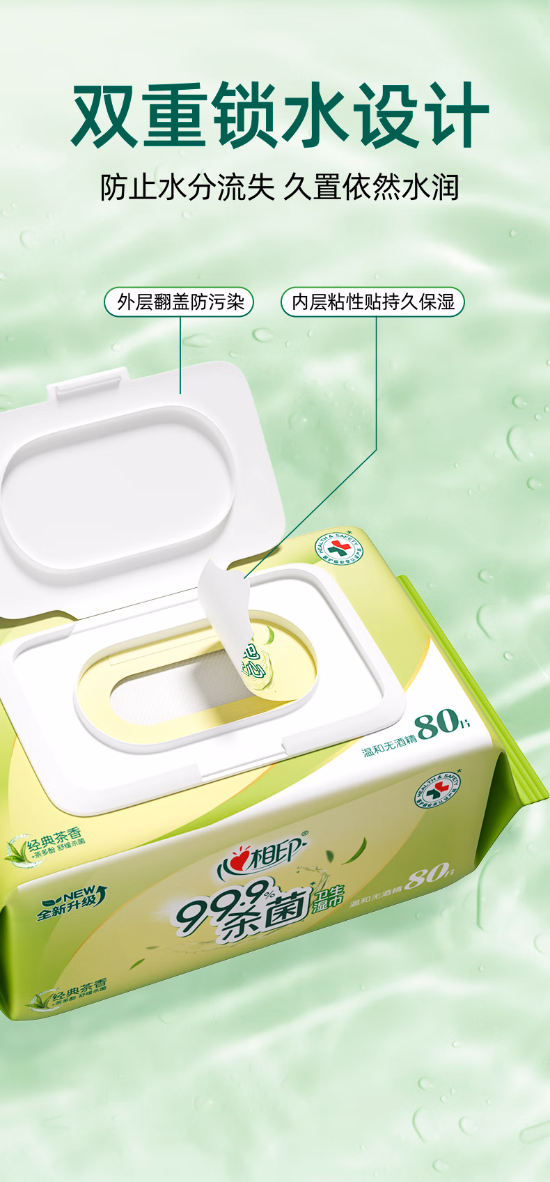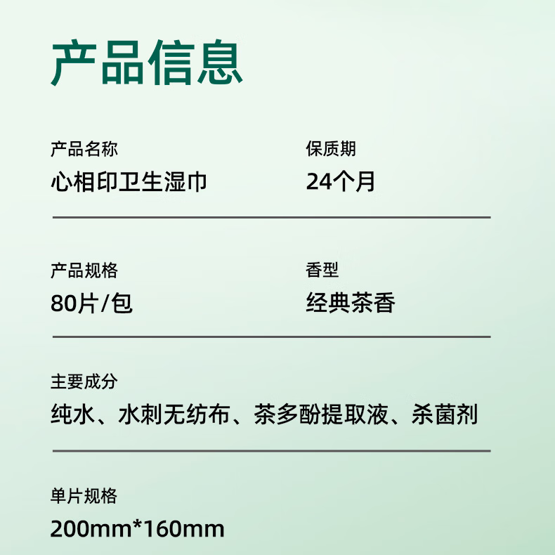 包装清单  :   心相印湿巾 杀菌卫生80片*8包 全新升级加大加厚(经典茶香)
