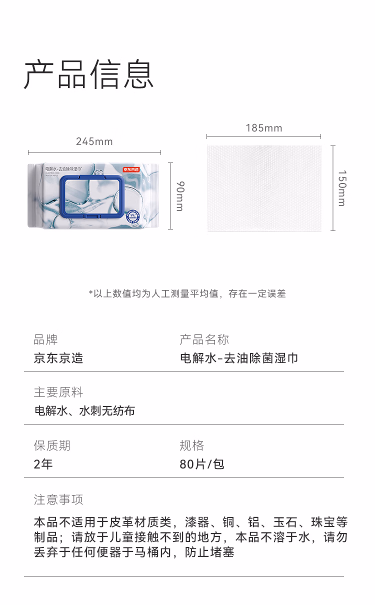 包装清单  :   京东京造电解水去油污除菌湿巾80片*5包 湿纸巾厨房湿巾纸懒人抹布
