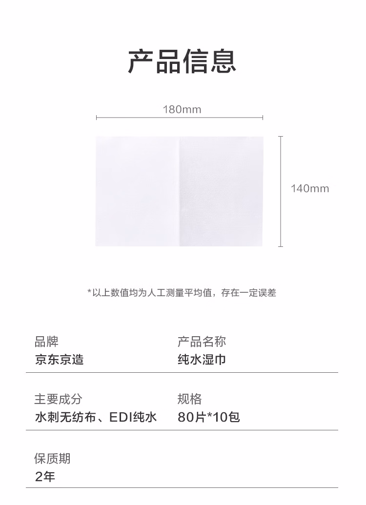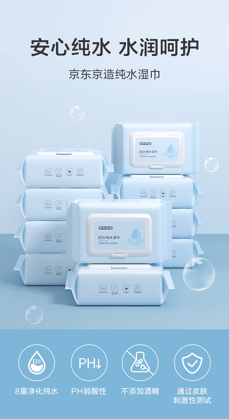 包装清单  :   京东京造 EDI纯水湿巾80片*10包 洁肤柔湿纸巾 婴儿湿巾纸 8重过滤温和