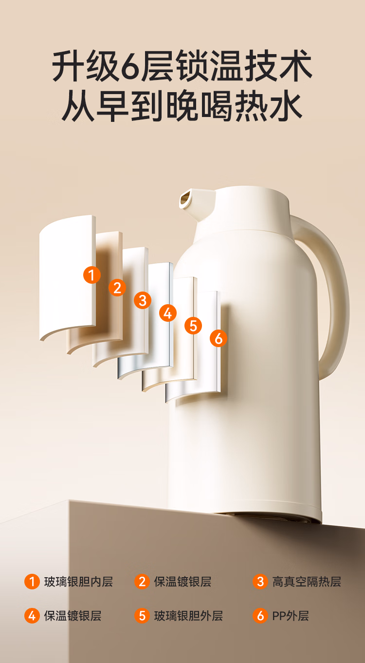 包装清单  :   京东京造保温壶家用大容量热水瓶壶玻璃内胆双层暖水瓶壶宿舍办公1.6L