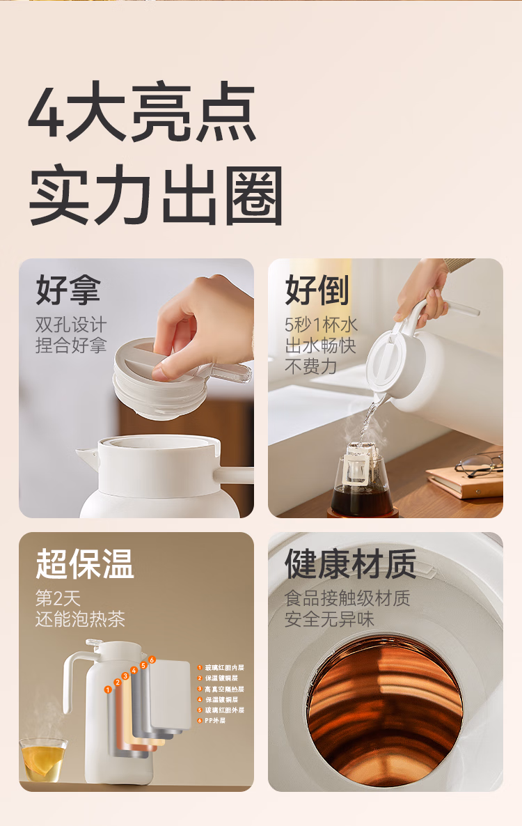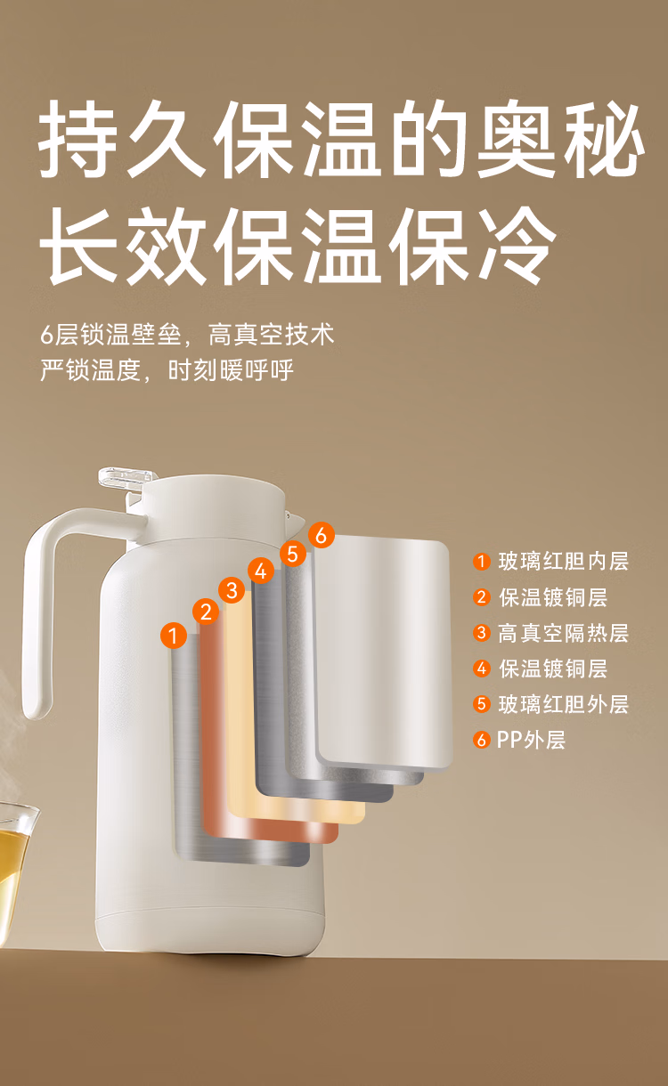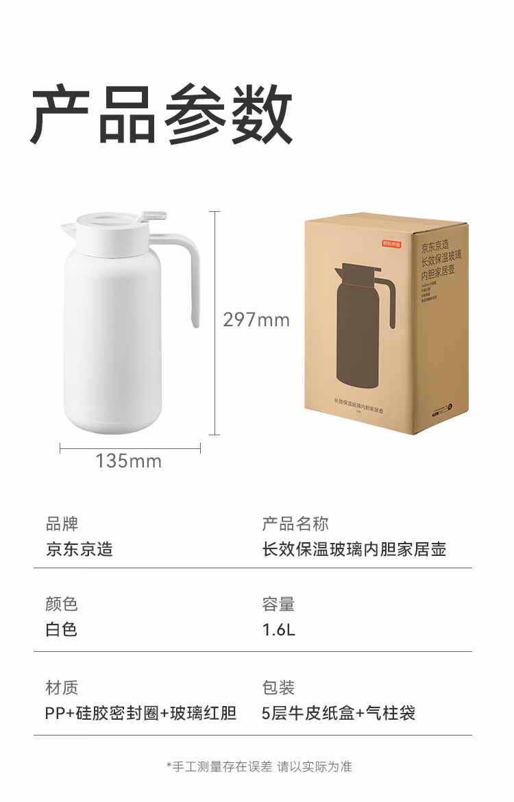包装清单  :   京东京造保温壶【长效续航】家用大容量热水瓶玻璃暖水瓶壶宿舍办公1.6L