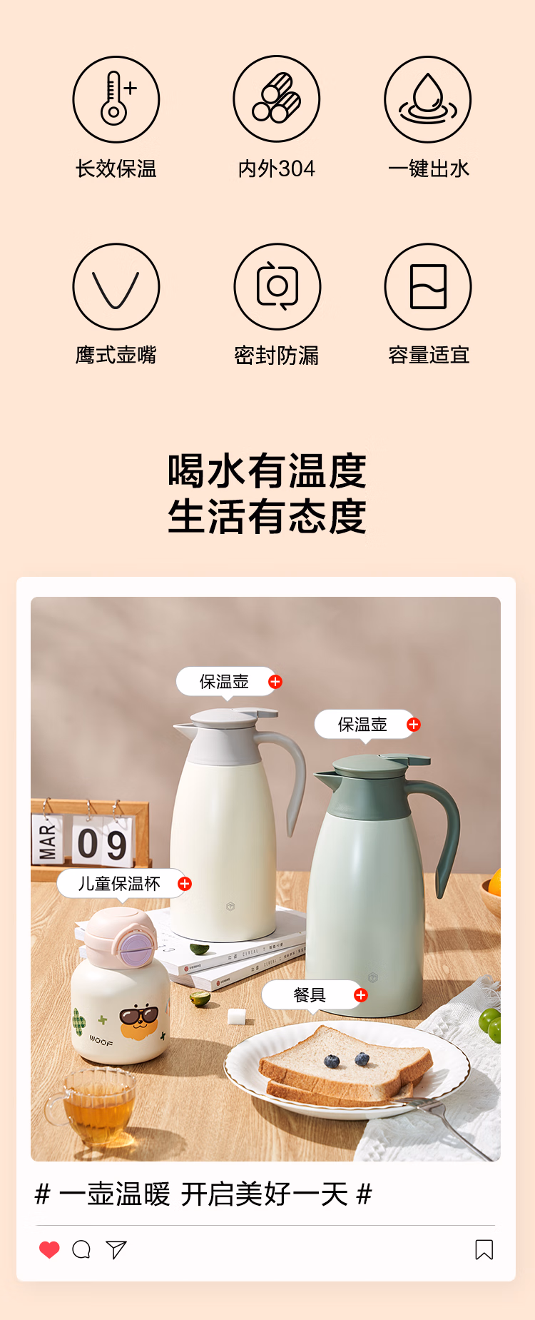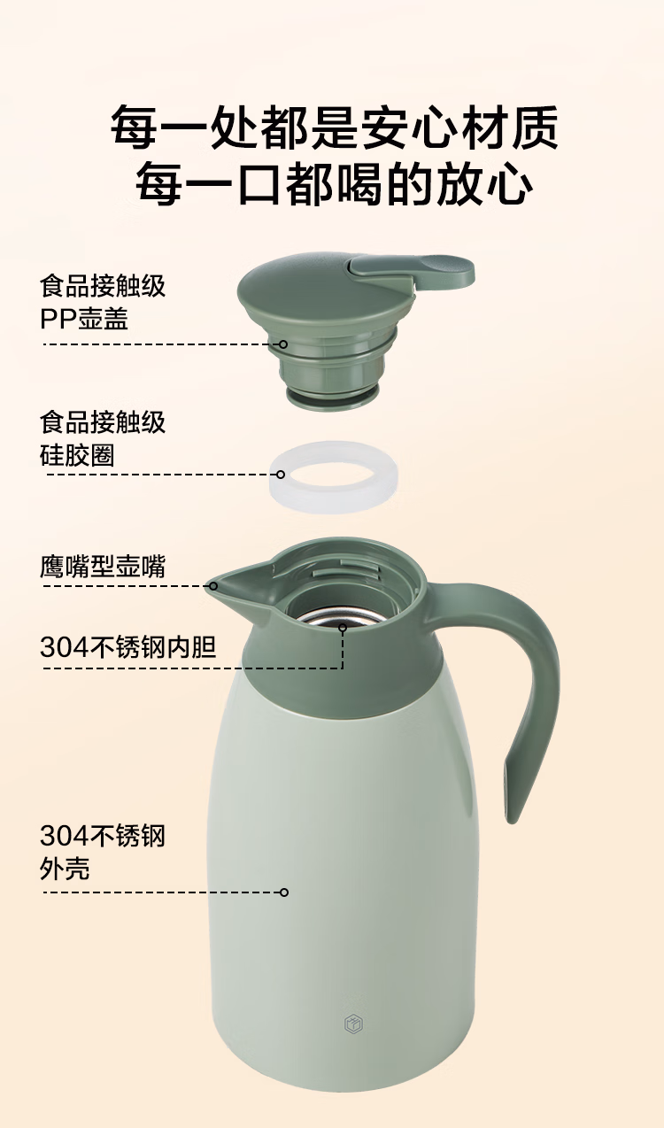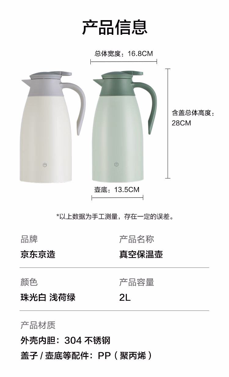 包装清单  :   京东京造 保温壶 【多层锁温】家用大容量热水瓶暖壶 304不锈钢绿色2L