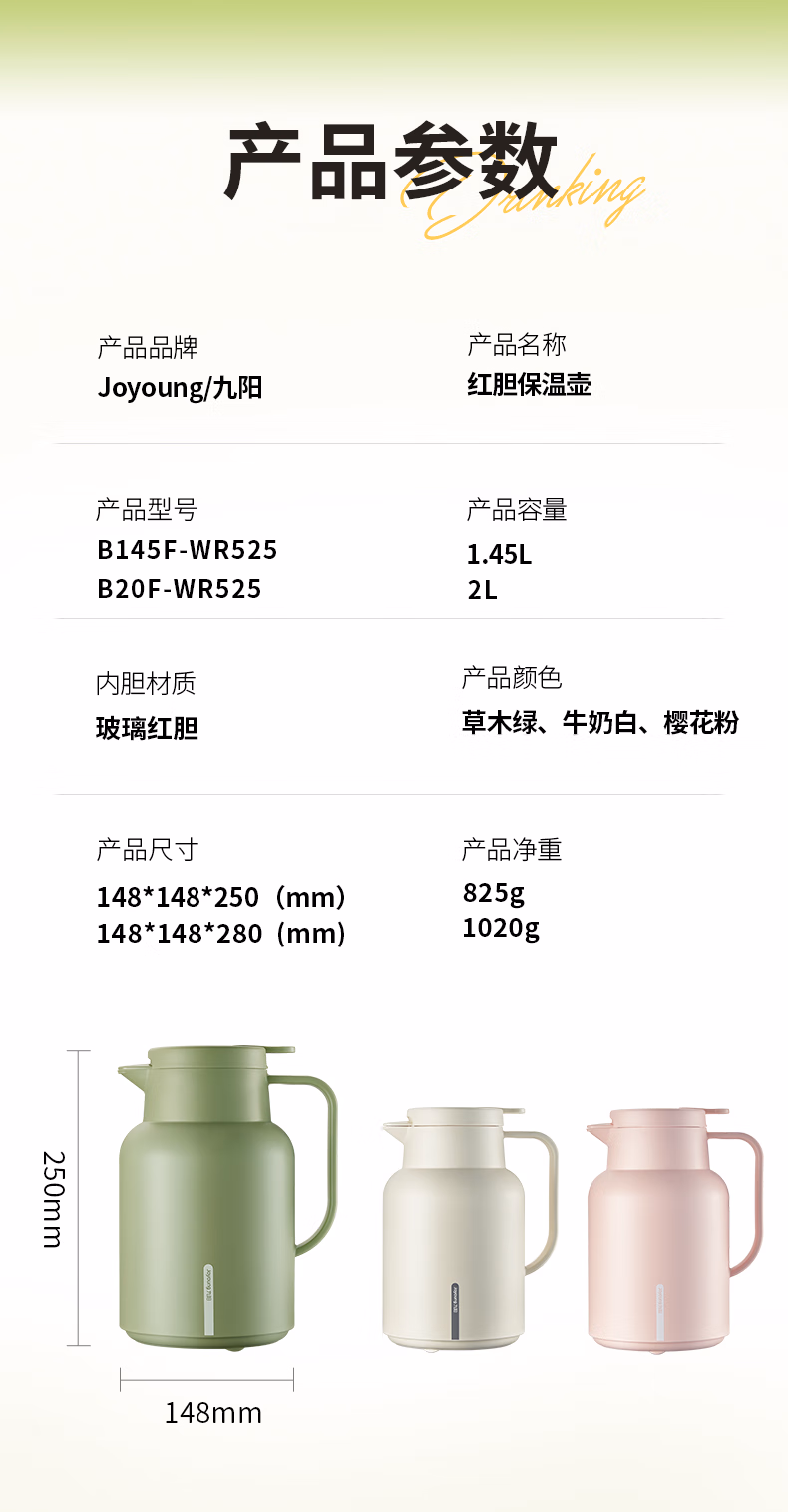 包装清单  :   九阳(Joyoung)保温壶家用大容量保温水壶玻璃内胆暖水壶学生宿舍热水瓶2L白色