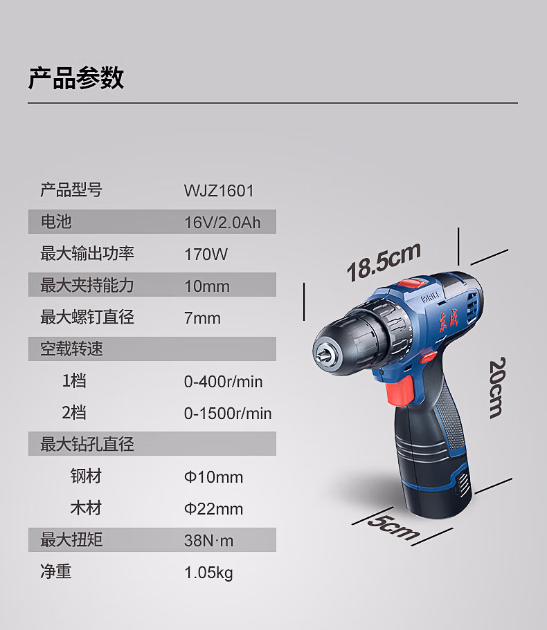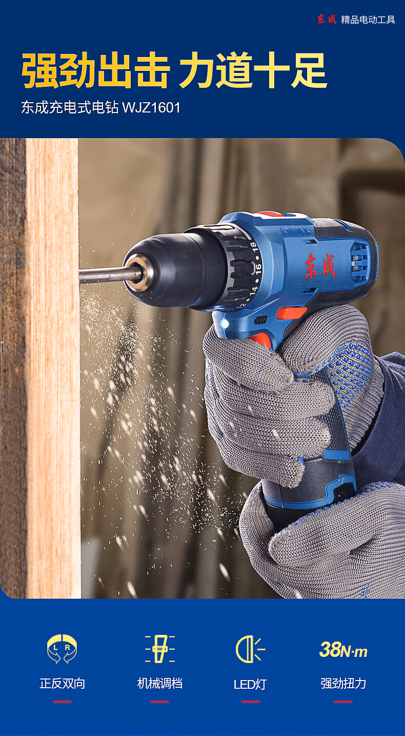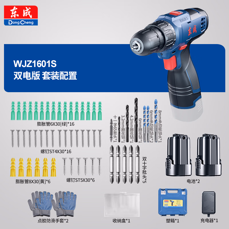 包装清单  :   东成16V手电钻家用锂电钻工具电动螺丝刀套装手枪钻起子机WJZ1601ST