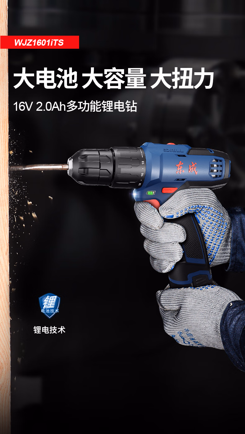 包装清单  :   东成16V冲击锂电钻WJZ1601iTS手电钻电动螺丝刀起子机工具箱套装